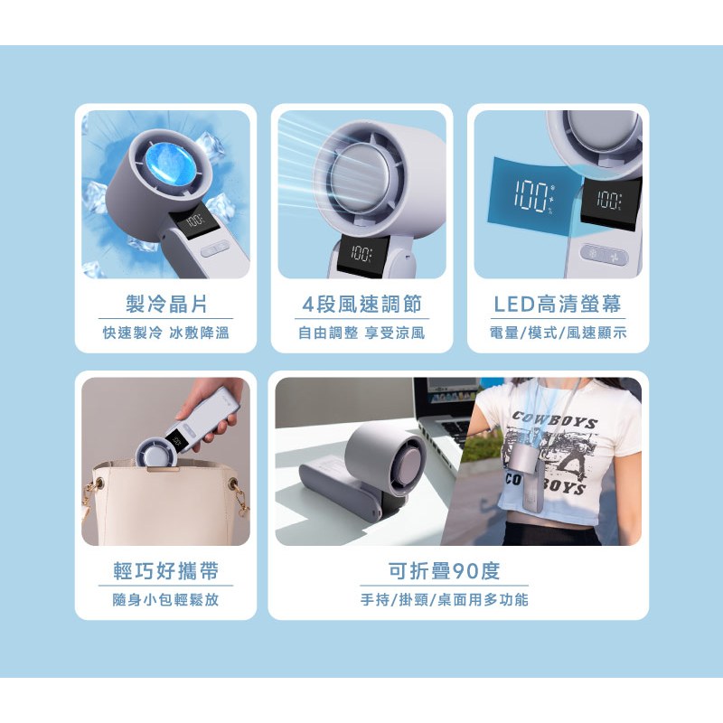 【LaPO】製冷高速可折疊隨身風扇 5100mAh大電量 日本松下電芯 出國可帶 手持 掛頸 製冷晶片 可折疊白色|奶茶|粉紫USB & Mobile FansLycander官方旗艦店