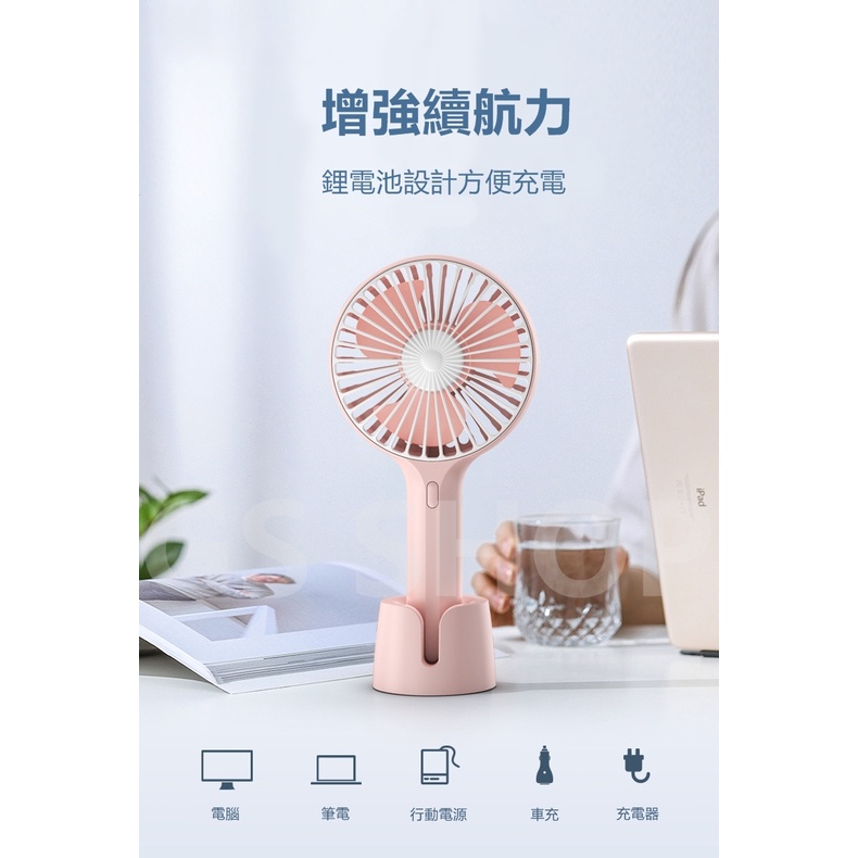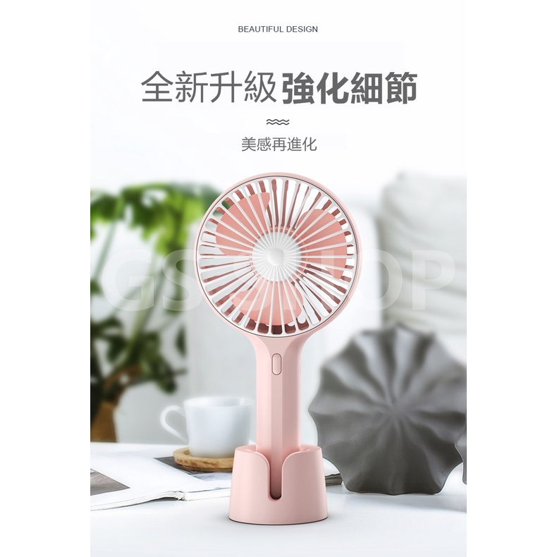 手持風扇 三段風速 超大葉扇 迷你輕巧好攜帶 方便清洗 低噪音 手持扇 底座設計 可放置於桌上 掛繩孔 涼扇 兩用電扇白色|粉色USB & Mobile FansGS 3C 手機平板配件選品店