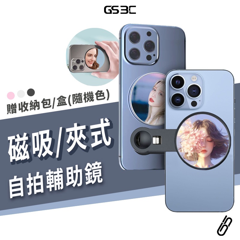 自拍必備 不求人 自拍鏡 夾式 Magsafe 磁吸式 手機自拍鏡 後鏡頭自拍鏡 反光 鏡子 手機 自拍神器 通用型磁吸-白色|磁吸-粉色|磁吸-黑色Selfie AccessoriesGS 3C 手機平板配件選品店
