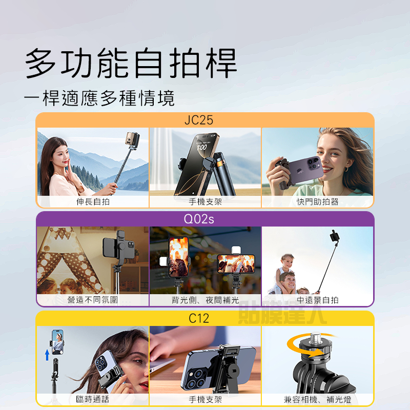 台灣現貨 手機助拍器【2025新款】手機拍攝影 補光自拍棒 迷你自拍棒 360度旋轉橫豎拍 拉伸支架 四腳架 自拍桿JC25 黑色無燈款|C12 黑色無燈款|Q02s 黑色補光燈款Selfie AccessoriesGLASS貼膜達人-3C配件專賣|保護貼、手機殼、辦公室3C