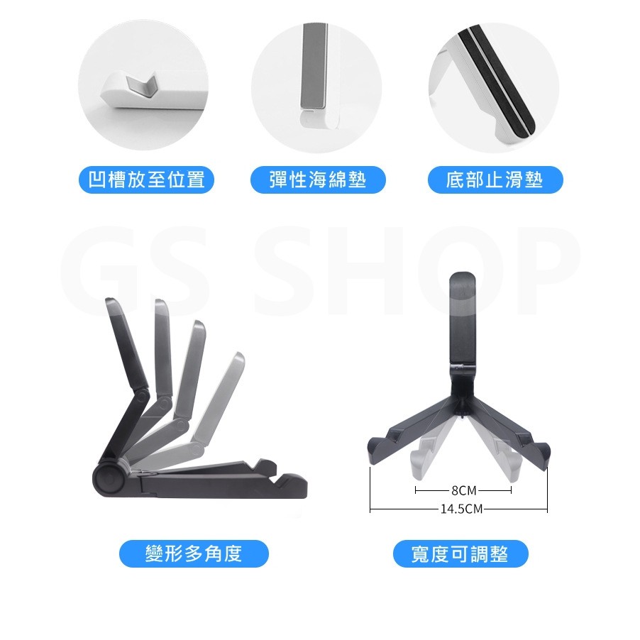 多角度 摺疊收納 手機 平板 iPhone iPad 桌面支架 方便攜帶 好收納 平板架 平板座 手機架 止滑 變形黑色|白色Selfie AccessoriesGS 3C 手機平板配件選品店