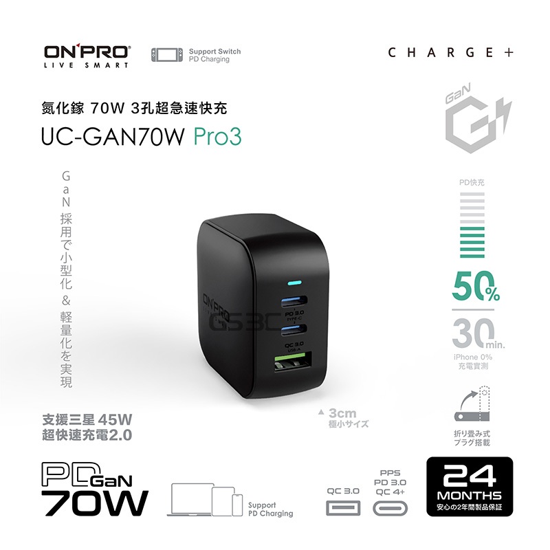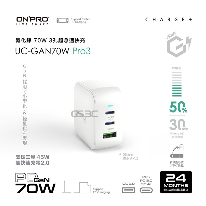 onpro GaN 氮化鎵 48W 70W 多孔 急速 快充 閃充 迷你 充電器 充電頭 PD USB-C 豆腐頭 旅充45W 1A+1C-白,贈 C to C 快充線-100cm|45W 1A+1C-黑,贈 C to C 快充線-100cm|70W 1A+2C-白,贈 C to C 快充線-100cm|70W 1A+2C-黑,贈 C to C 快充線-100cmCables, Chargers & ConvertersGS 3C 手機平板配件選品店
