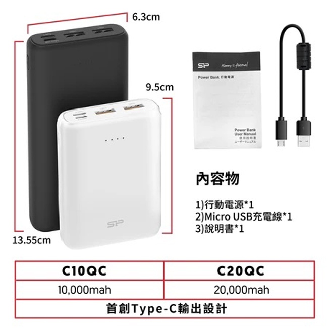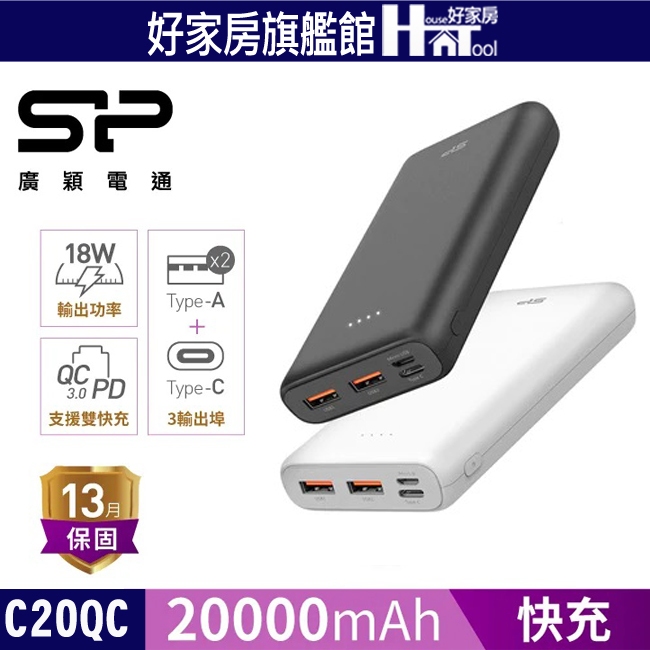 SP C20QC【有標示Wh】20000mAh PD QC快充蘋果安卓Type-C雙向快充行動電源行充行電【HT好家房】黑色|白色Powerbanks & BatteriesHT好家房