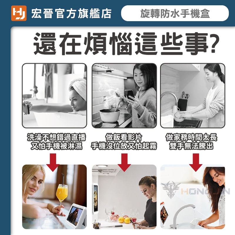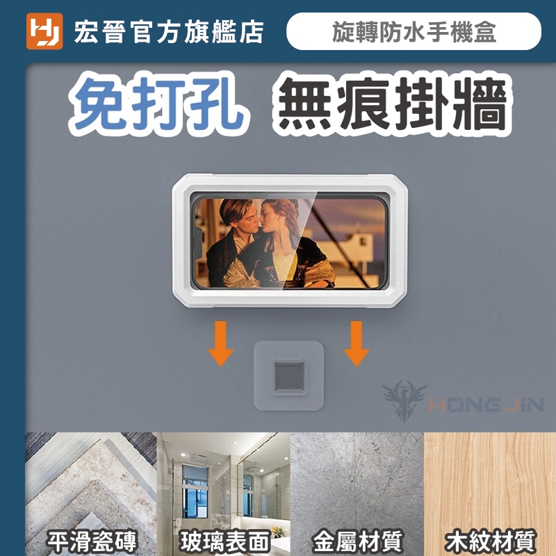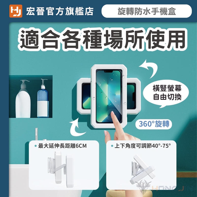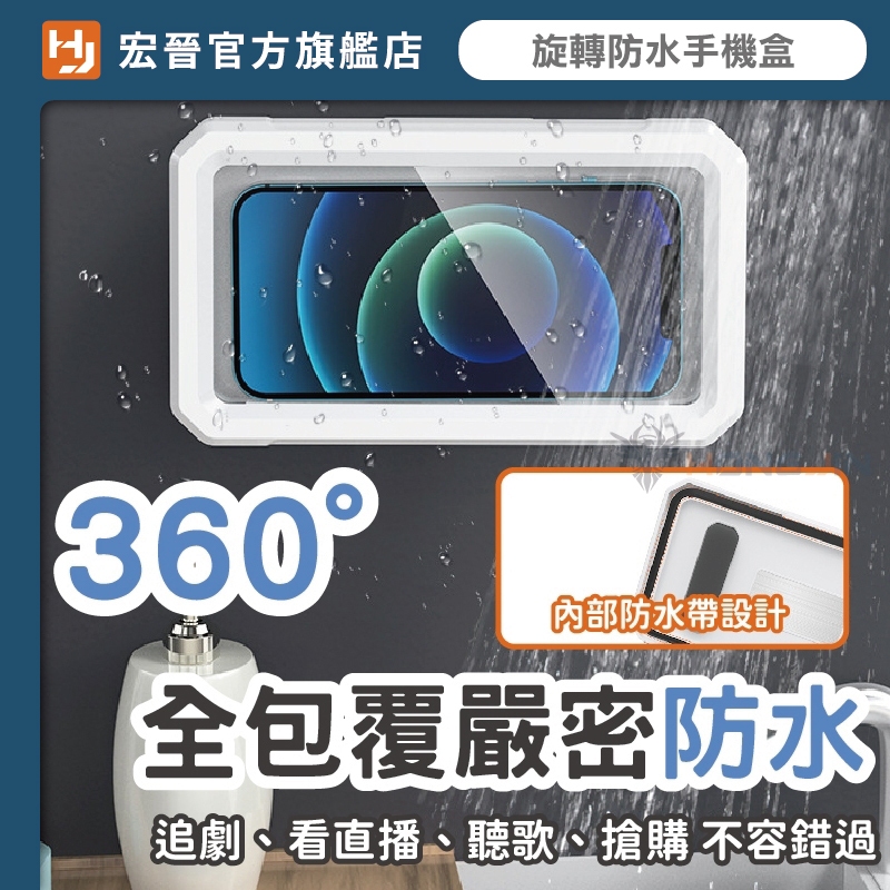 360度旋轉浴室防水手機盒 免鑽孔 壁掛 可觸螢幕 防水盒 可旋轉 懶人支架 追劇神器 手機支架 浴室手機盒 廚房手機架白|粉|黑Mobile PouchesHONG JIN 宏晉 |3C資訊廣場