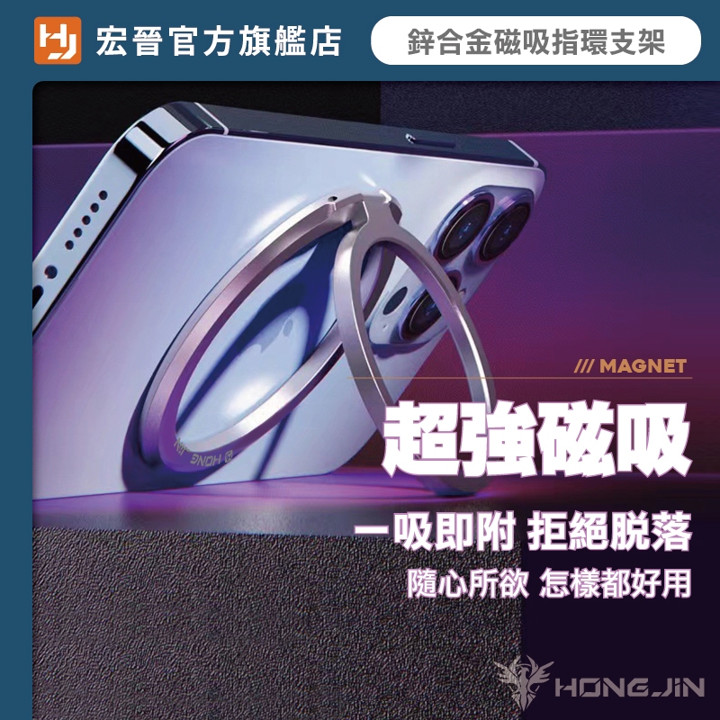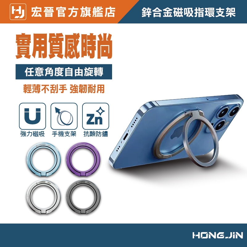 宏晉 鋅合金磁吸指環支架 MAGSAFE金屬指環扣 磁吸背貼 強力磁吸支架 支架 指環 手機支架 磁吸灰色|紫色|銀色|藍色Phone GripsHONG JIN 宏晉 |3C資訊廣場