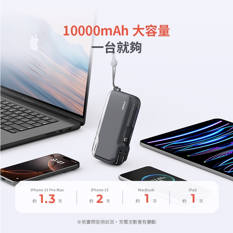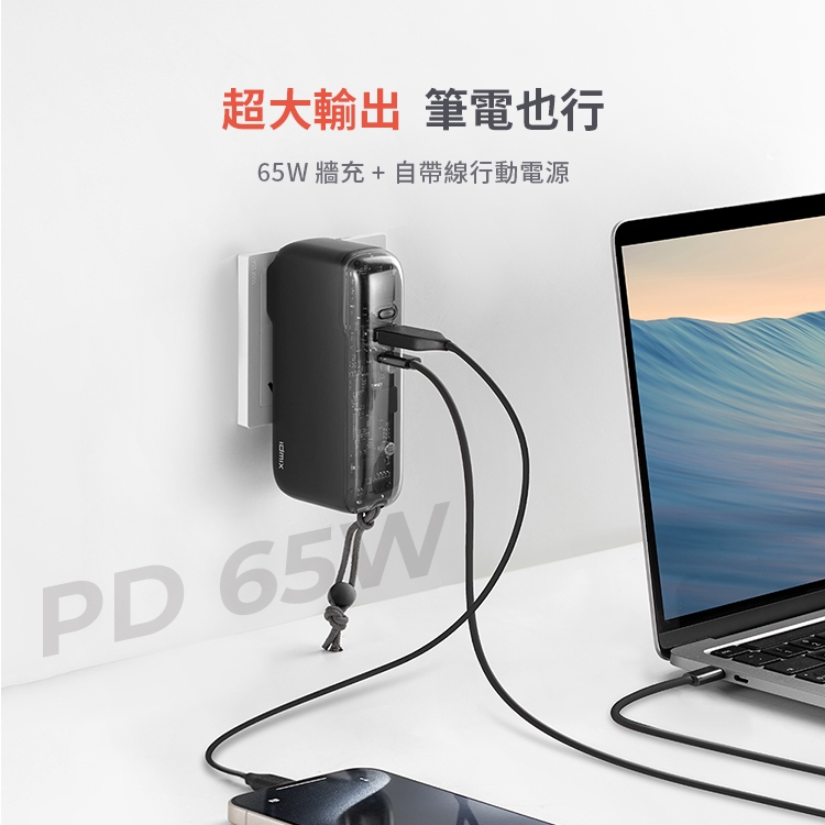 IDMIX 10000mAh CH09C 65W 旅行快充行動電源 自帶插頭 自帶線星艦黑|星光白Powerbanks & Batteriesidmix 官方旗艦店