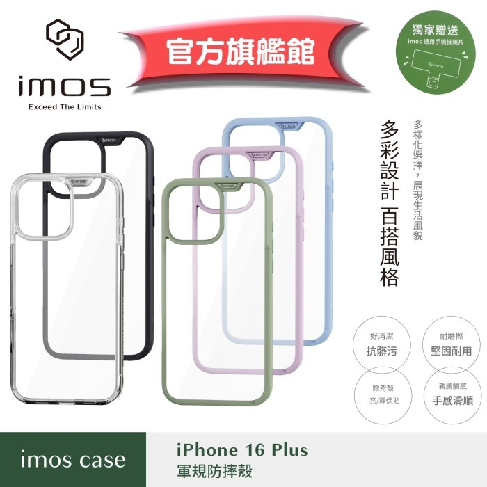 imos 【官方旗艦館】 iPhone 16 Plus 6.7 吋 軍規殼手機殼防摔殼 保護殼贈手機掛繩片跟手機殼背膜貼黑色 邊框黑色 背面透明|麻綠色 邊框亞麻綠色 背面透明|藍莓色 邊框藍莓色 背面透明|丁香紫色 邊框丁香紫色 背面透明|全透明Cases, Covers, & Skinsimos 官方旗艦館