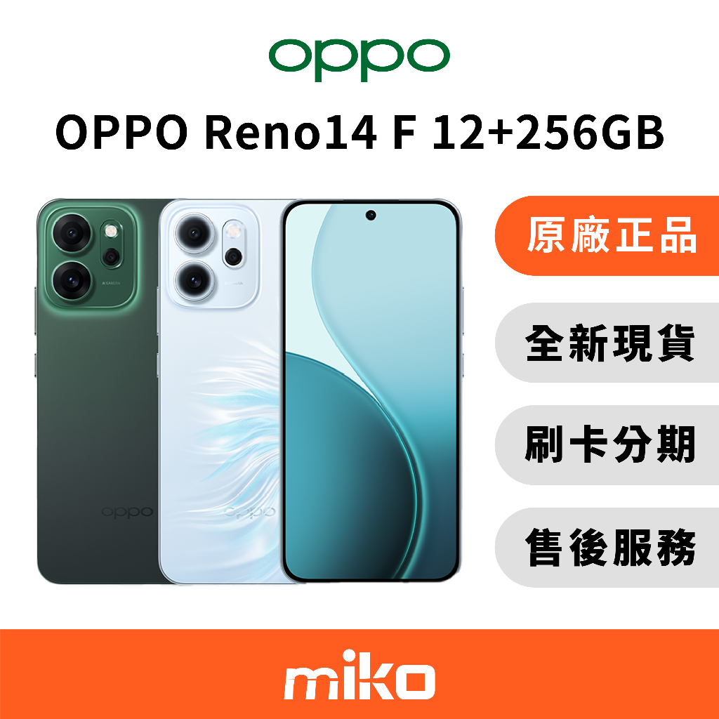 OPPO Reno 14F 12G+256G 台灣原廠公司貨 全新未拆 快速出貨勿下單此項,僅查看10%蝦幣回饋同等金額|絢彩藍|靜謐綠miko 米可|手機門號配件專賣