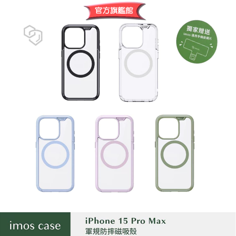 imos【官方旗艦館】iPhone 15 Pro Max 6.7 無支架款 磁吸殼軍規保護殼防摔殼手機殼 MagSafe藍莓色 邊框藍莓色 背面透明|亞麻綠色 邊框亞麻綠色 背面透明|丁香紫色 邊框丁香紫色 背面透明|黑色 邊框黑色 背面透明|全透明Cases, Covers, & Skinsimos 官方旗艦館