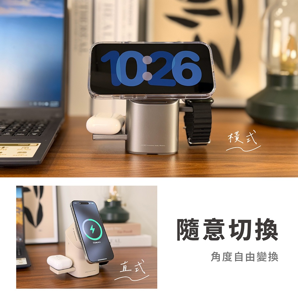 JV3C MAG J Qi2 多功能無線充電支架 磁吸充電座 三合一充電 適用 Apple Watch AirPods鈦灰色|奶茶色Cables, Chargers & ConvertersJV3C商城