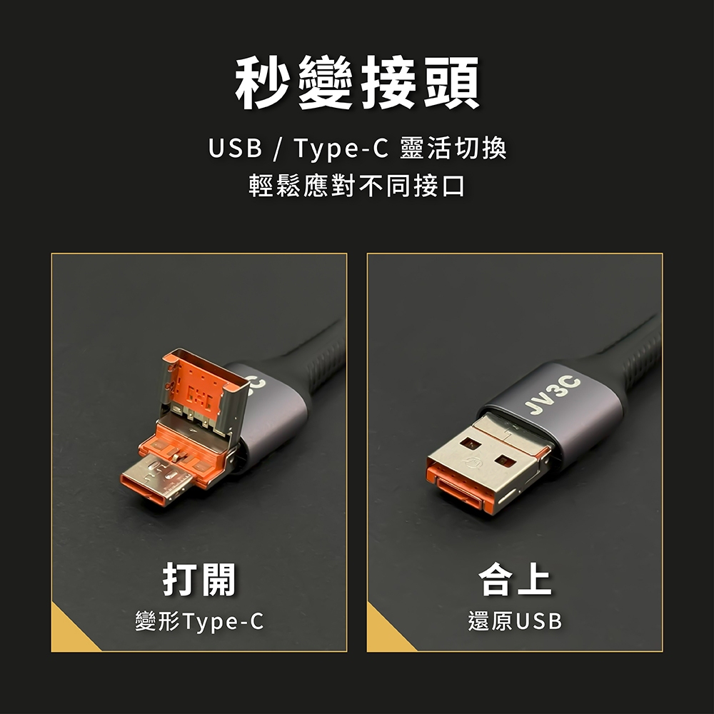 JV3C TRARGE CABLE 變形充電傳輸線 充電線 快充線 傳輸線 TypeC USB PDType-C款,100公分|平果款,100公分Cables, Chargers & ConvertersJV3C商城