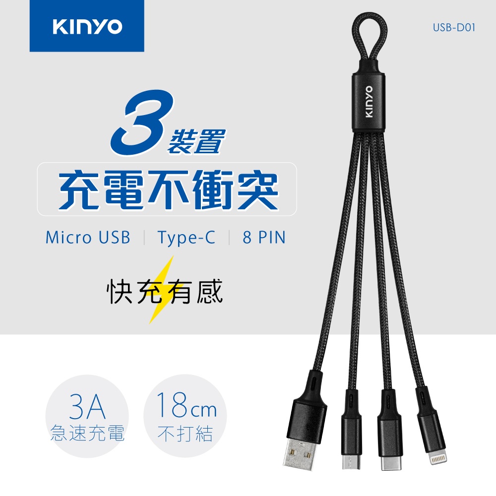 【KINYO】 三合一輕巧快充線18CM(短)(USBD) Type-C、8 PIN、Micro USB、3A快充三合一快充線 (限時特賣下單專用)|USBD01 三合一快充線Cables, Chargers & ConvertersKINYO官方旗艦店_家電館