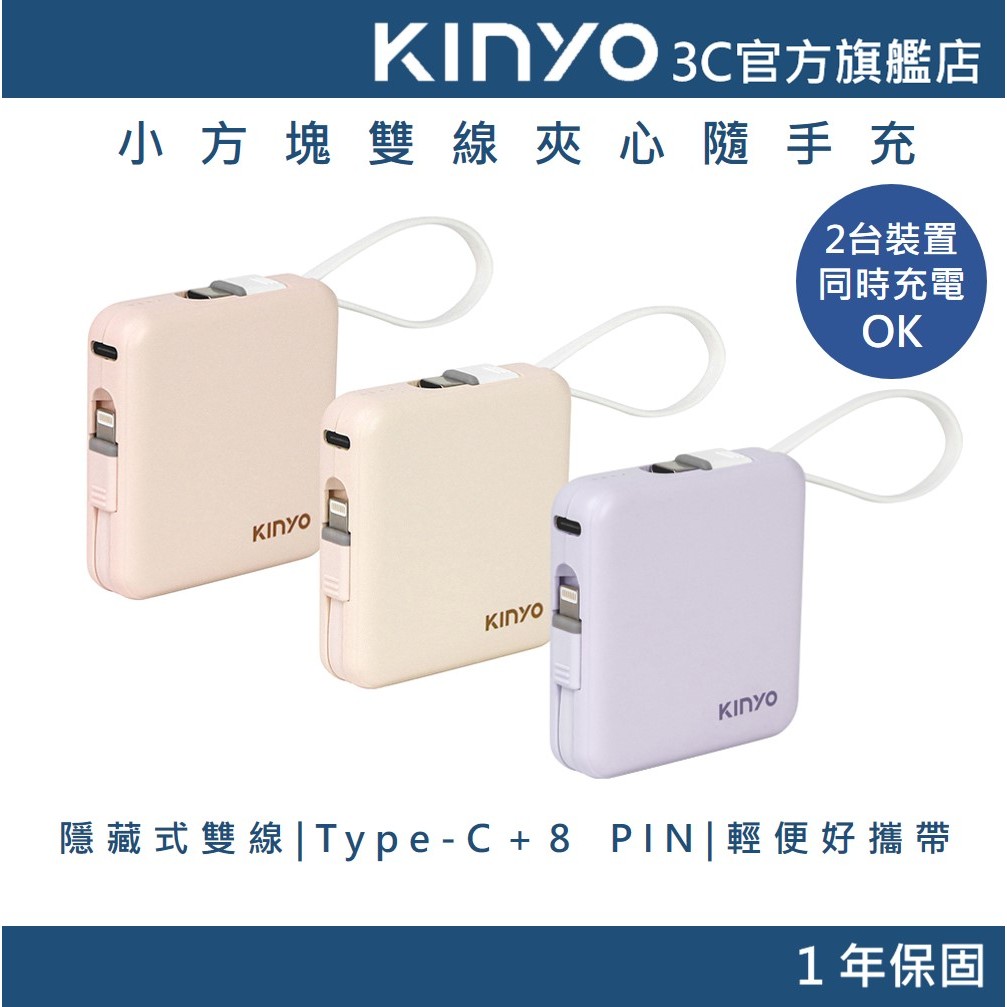 【KINYO官方直營】5000mAh小方塊雙線夾心隨手充 (KPB)行動電源 自帶線 行動充 Type-C 蘋果KPB2302PI 粉色|KPB2302Y 米黃色|KPB2302PU 紫色Powerbanks & BatteriesKINYO官方旗艦店_3C館