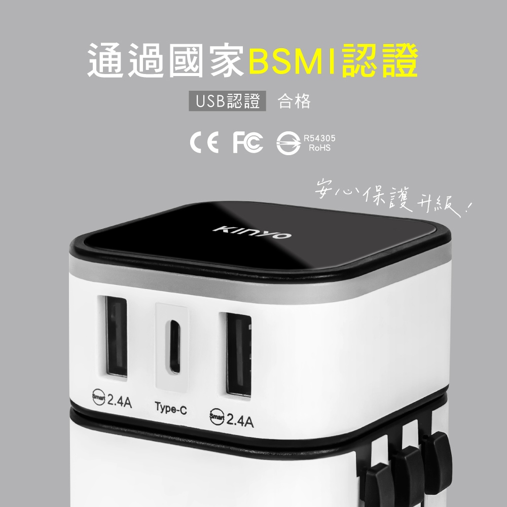 【KINYO官方直營】多合一萬國旅遊轉接頭 USB Type-C 110~240V國際電壓(MPP)黑色_3孔USB|白色_2孔USB+1孔Type-CCables, Chargers & ConvertersKINYO官方旗艦店_3C館