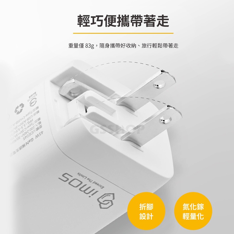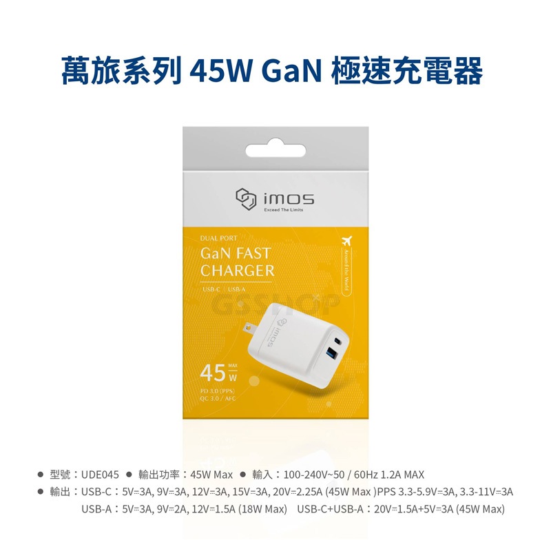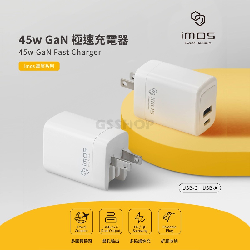 imos 45W萬旅GaN極速充電器 PD/QC 3.0 35W 40W 雙孔閃電充電器 充電頭 出國 旅行 多國 萬用35W雙孔閃電充電器|40W雙孔閃電充電器|45W萬國GaN極速充電器Cables, Chargers & ConvertersGS 3C 手機平板配件選品店