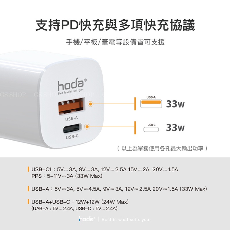 hoda 33W GaN氮化鎵智慧雙孔充電器 充電頭 USB-A+USB-C 支援PD與多項協議快充 豆腐頭 折疊式插頭33W黑色|33W白色Cables, Chargers & ConvertersGS 3C 手機平板配件選品店
