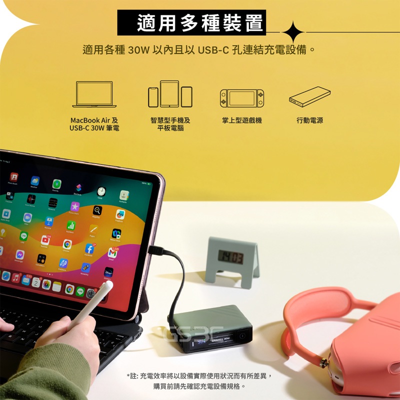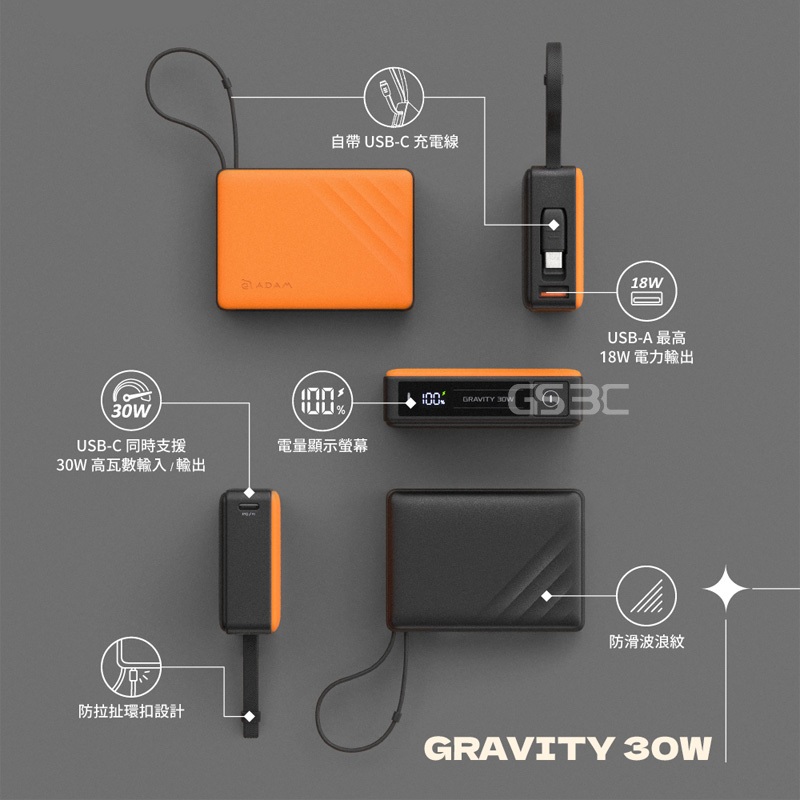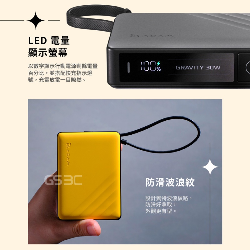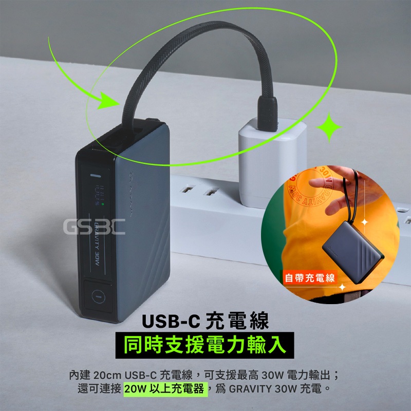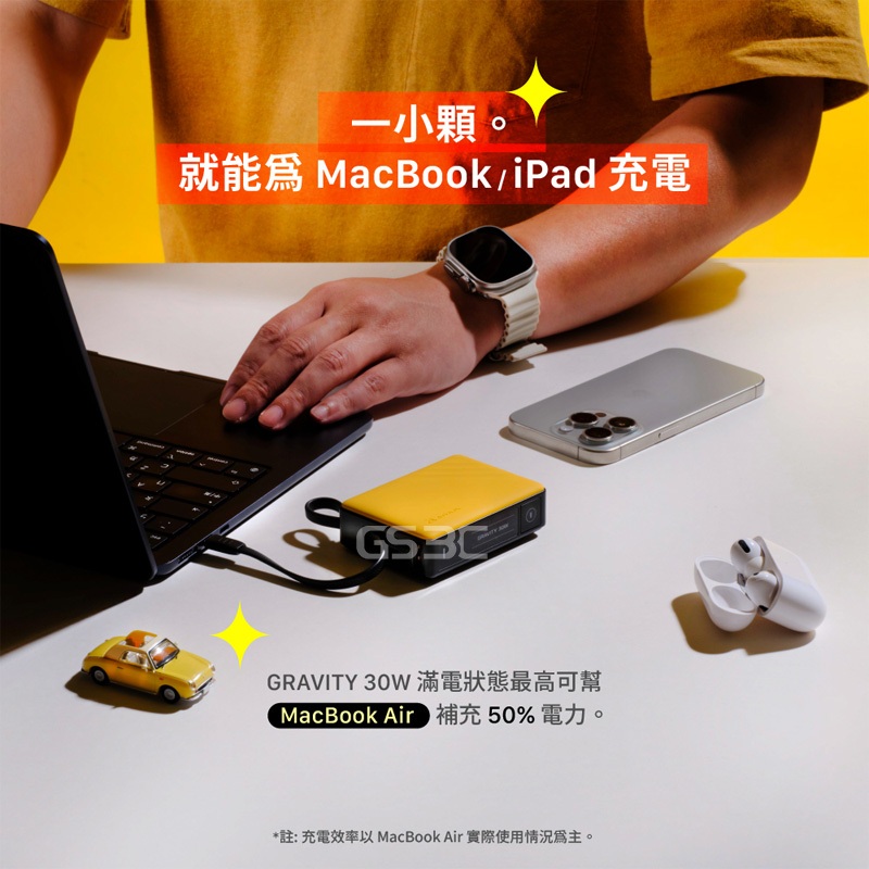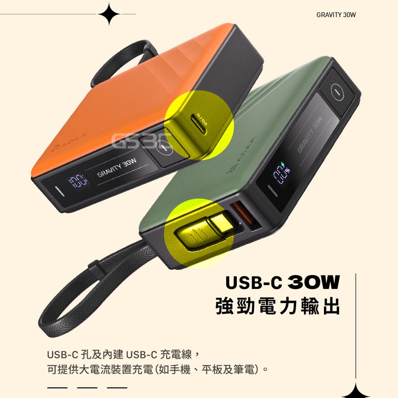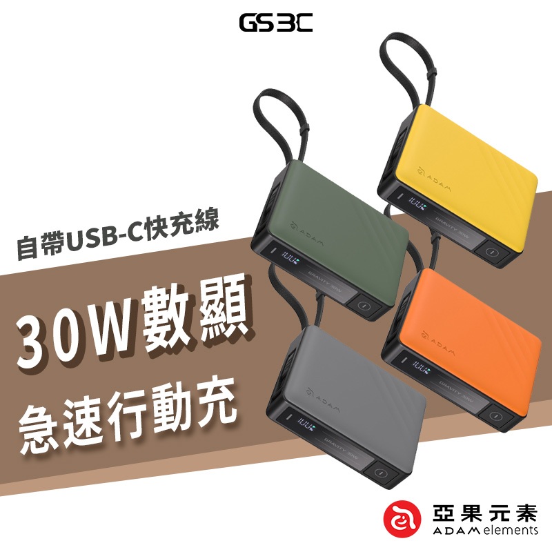 亞果元素 GRAVITY 30W 自帶線快充行動電源 10000mAh USB-C 數顯 支援Macbook iPad灰色|黃色|綠色|橘色Powerbanks & BatteriesGS 3C 手機平板配件選品店