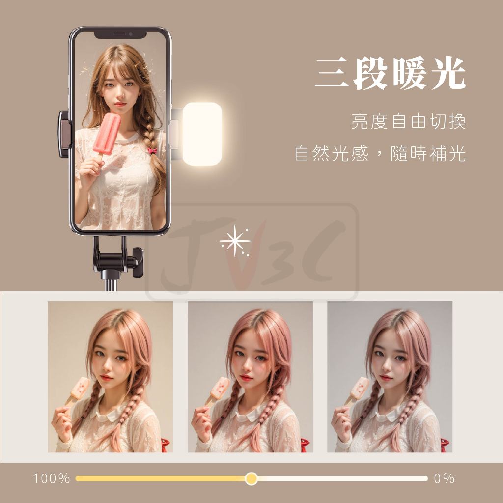 自拍美顏補光燈 自拍棒補光燈 三段變色 補光 三檔 暖光 暖色三檔暖光Mobile Flashes & Selfie LightsJV3C商城