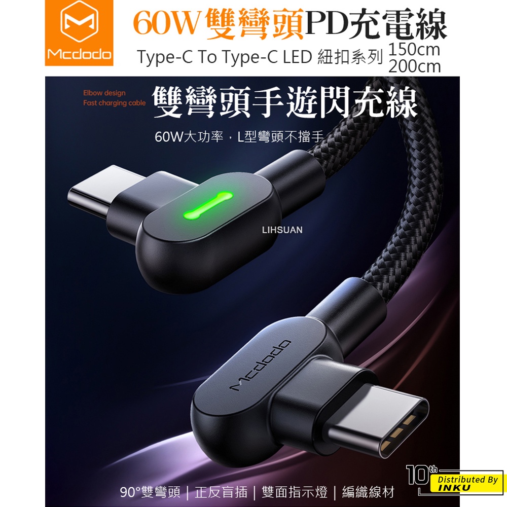 Mcdodo 麥多多 紐扣 雙TypeC 彎頭 PD 充電線 手機線 傳輸線 快充 手遊 1.5M 2M 台灣公司貨1.5M|2MCables, Chargers & Convertersibits手機配件 官方旗艦館