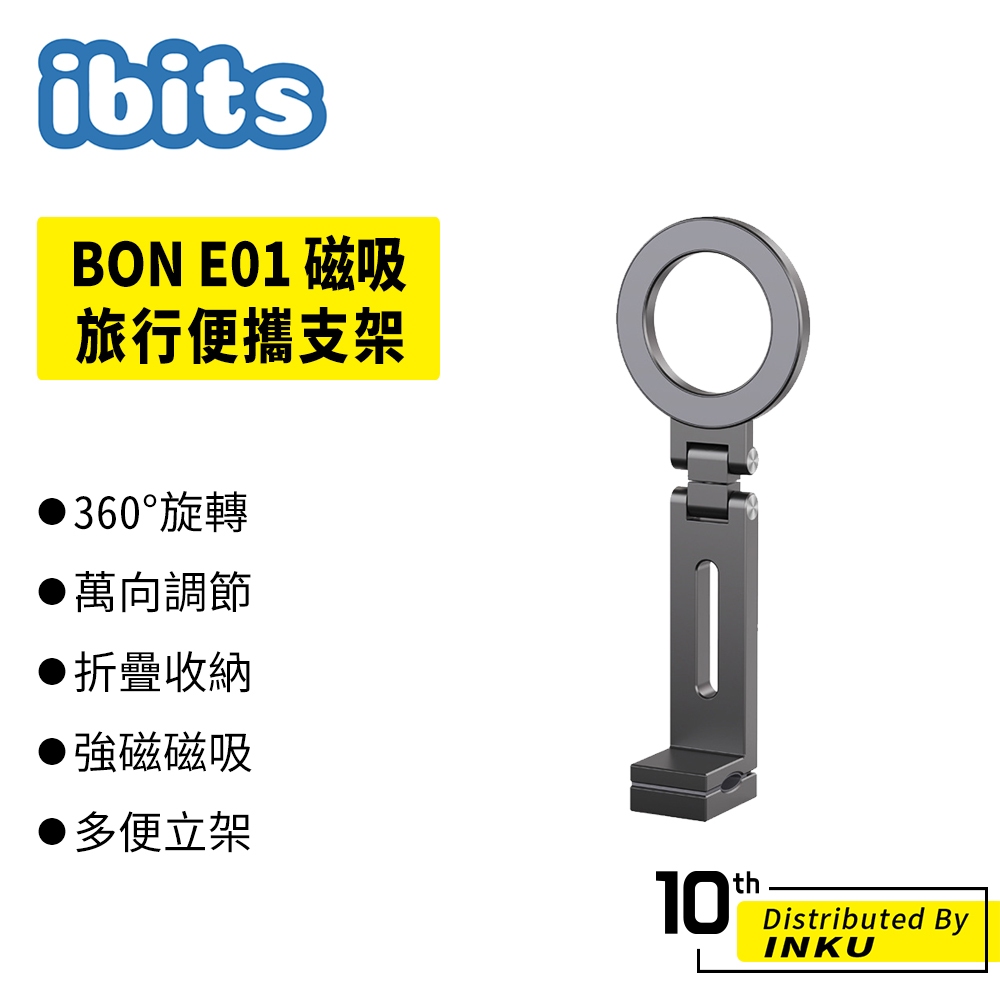 ibits BON E01 磁吸旅行便攜支架 手機支架 桌面 直播支架 金屬 可折疊 萬向調節 360°旋轉 N52磁鐵深空灰|皓月銀Selfie Accessoriesibits手機配件 官方旗艦館