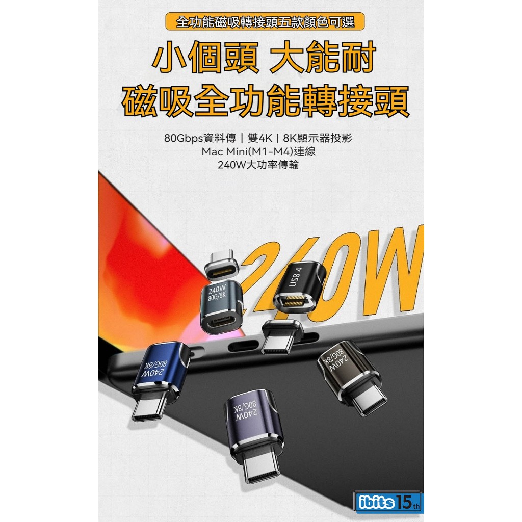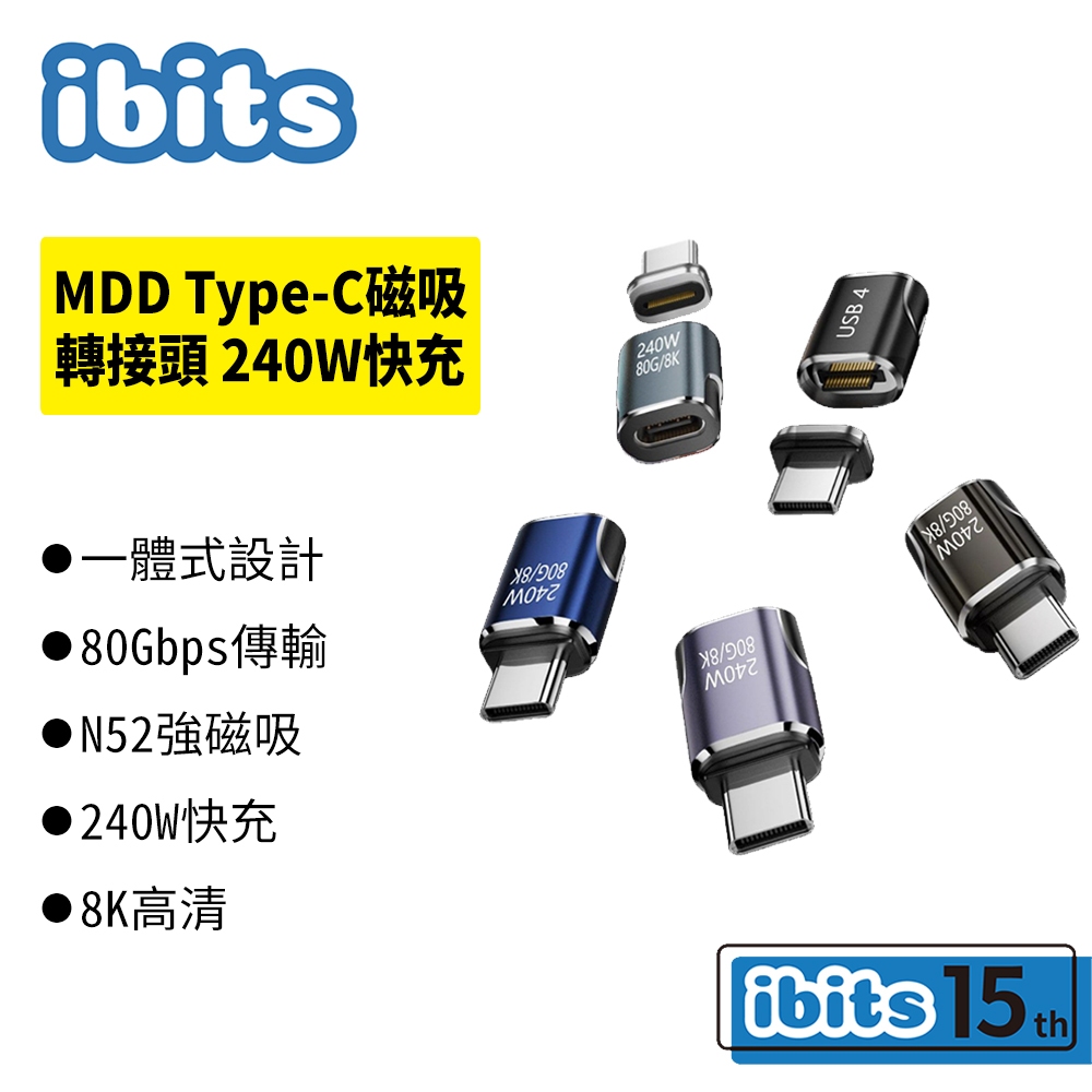 Type-C轉接頭 磁吸轉接頭 ibits MDD USB4 80Gbps 240W PD快充 8K輸出 全功能轉換器單磁吸頭-銀色|240W磁吸-黑色|240W磁吸-槍色|240W磁吸-藍色|240W磁吸-灰紫|240W磁吸-錆色|單磁吸頭-金色Cables, Chargers & Convertersibits手機配件 官方旗艦館