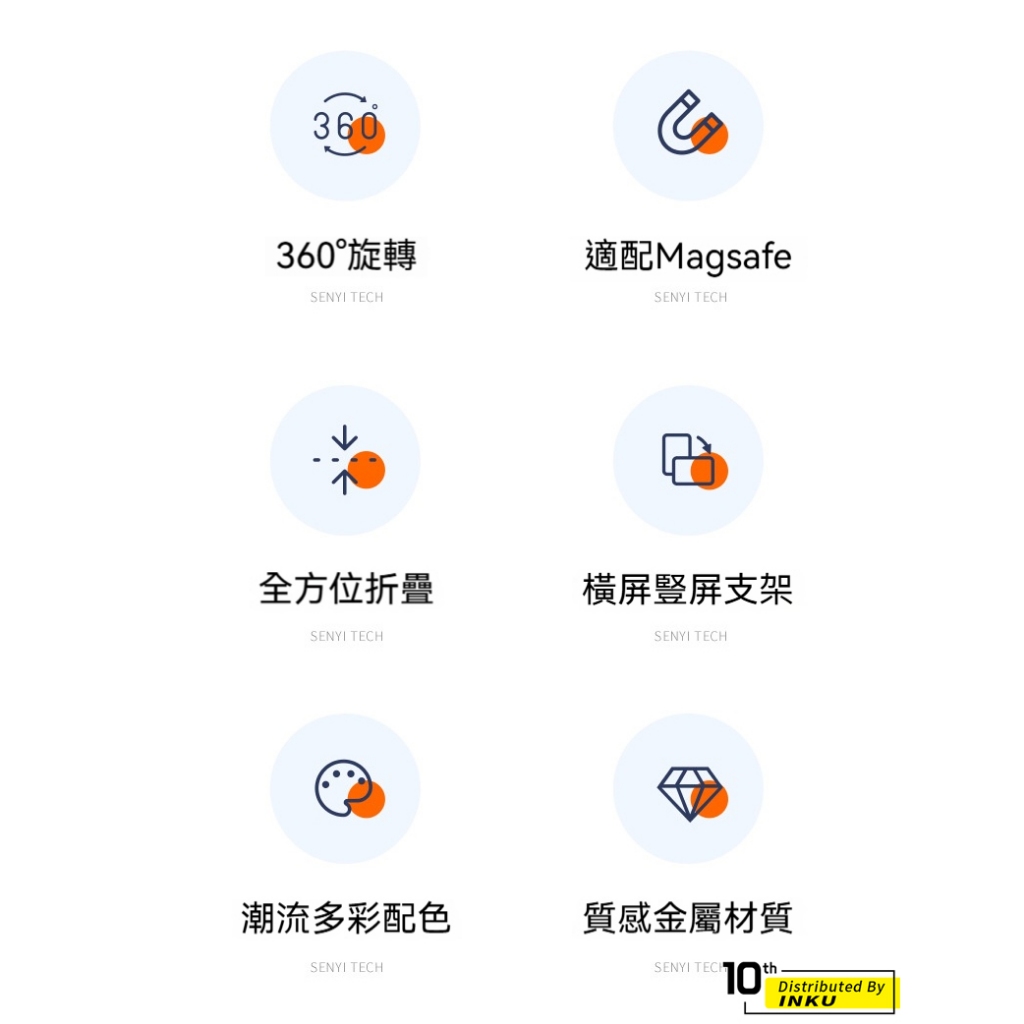 ibits AL2 MagSafe雙面磁吸指環支架 多角度可折疊 360度旋轉 適用蘋果黑色|白色|藍色|紫色|香檳金Selfie Accessoriesibits手機配件 官方旗艦館