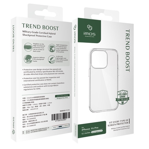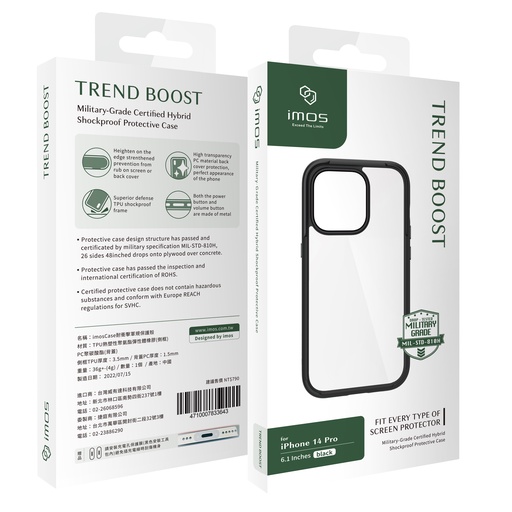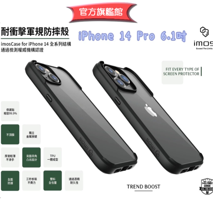 imos 【官方旗艦館】耐衝擊軍規防震防摔保護殼 iPhone 14 Pro 6.1 三鏡頭軍規殼手機殼防摔殼黑色 邊框黑色 背面透明|全透明Cases, Covers, & Skinsimos 官方旗艦館