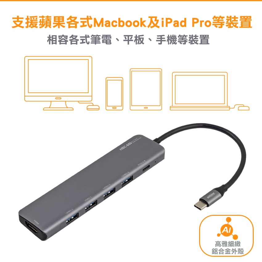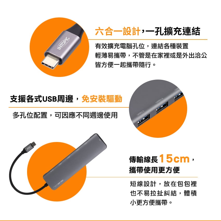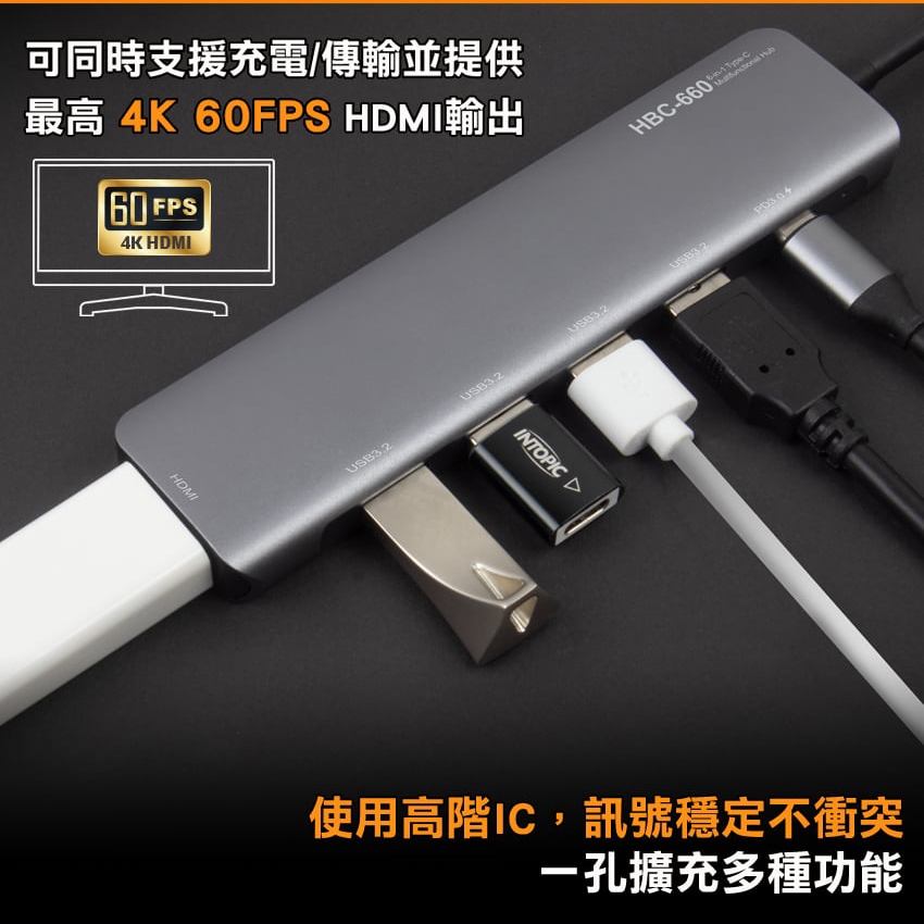 【Intopic】HBC-660 六合一 Type-C 多功能 HDMI + USB3.2 集線器 USB HUB【Intopic】HBC-660 六合一 Type-C 多功能 HDMI + USB3.2 集線器 USB HUBCables, Chargers & ConvertersIntopic廣鼎國際 | 官方3C旗艦館