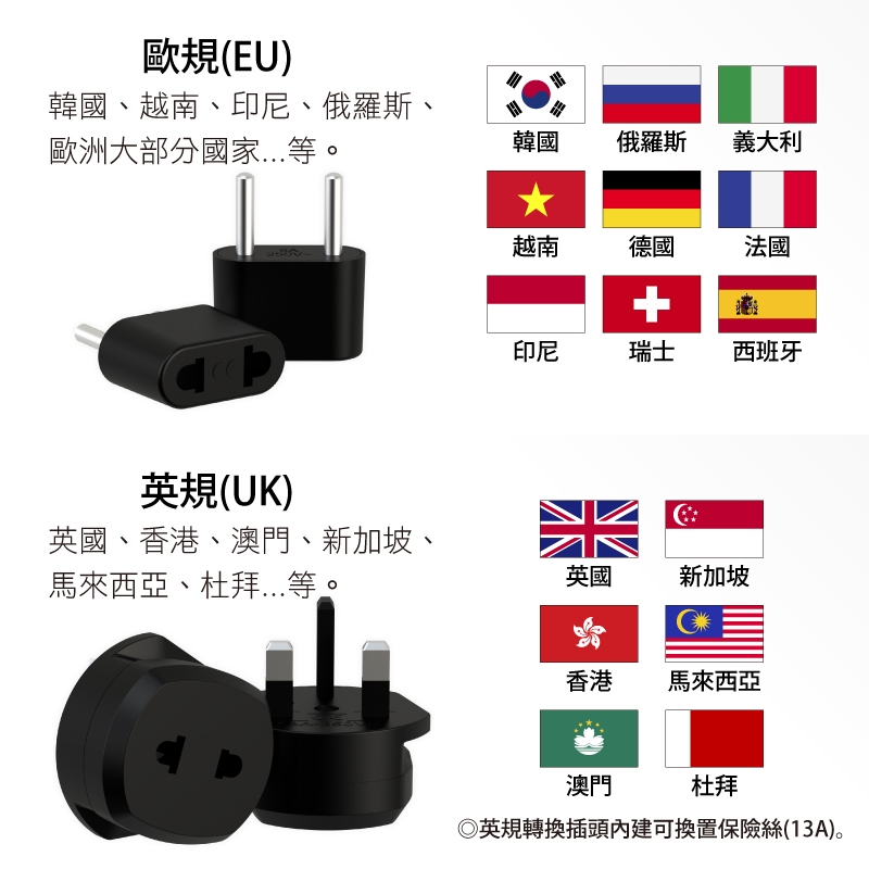 成電牌 世界通旅遊轉接器 轉接插頭 轉換頭歐規 4.0mm|美規|澳規|英規Cables, Chargers & ConvertersiPlus+保護傘延長線品牌館