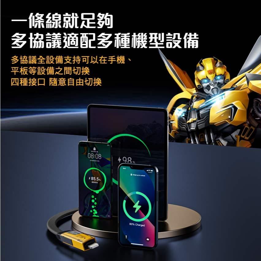 【變形金剛】TF-A15大黃蜂鋅合金四合一60W高速充電線 正版授權 1M TYPE-C USB-A Lightning【變形金剛】TF-A15大黃蜂鋅合金四合一60W高速充電線 正版授權 1M TYPE-C USB-A LightningCables, Chargers & ConvertersIntopic廣鼎國際 | 官方3C旗艦館