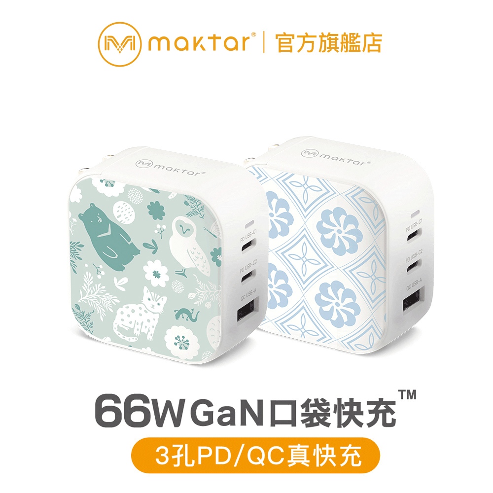 Maktar 66W GaN 氮化鎵 印花樂聯名 口袋快充 充電器 三孔快充 小菊花磚/森林好朋友 ★贈聯名收納袋66W 小菊花磚|66W 森林好朋友|66W 小菊花磚+2代萬國轉接頭|66W 森林好朋友+2代萬國轉接頭Cables, Chargers & ConvertersMaktar 口袋相簿 備份豆腐品牌官方旗艦店