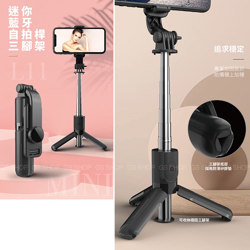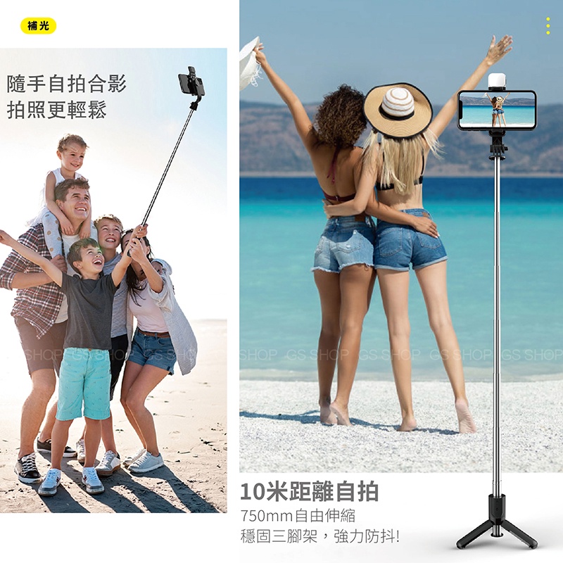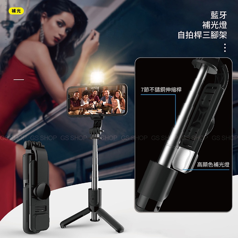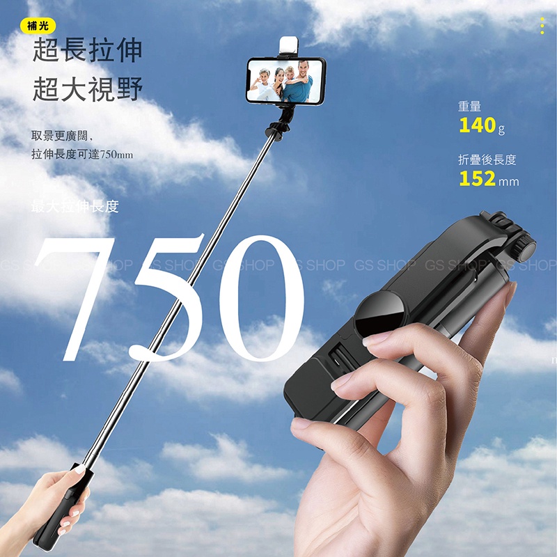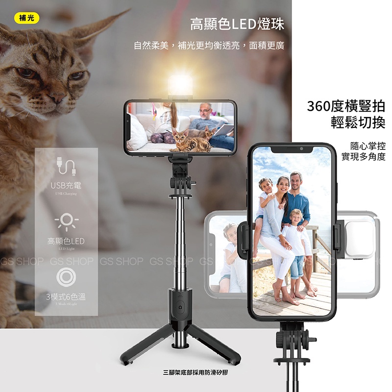 迷你 多段 三腳架 iPhone 藍牙自拍桿 自拍棒 自拍神器 LED 美肌 補光燈 藍牙控制 網紅 直播支架 腳架【補光款】黑色|【ㄧ般款】黑色Selfie AccessoriesGS 3C 手機平板配件選品店