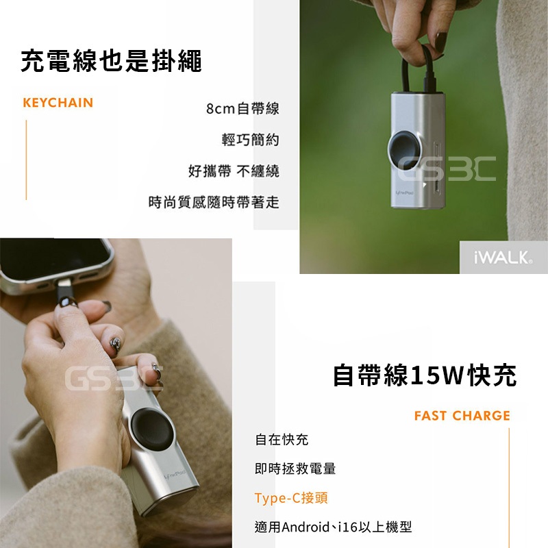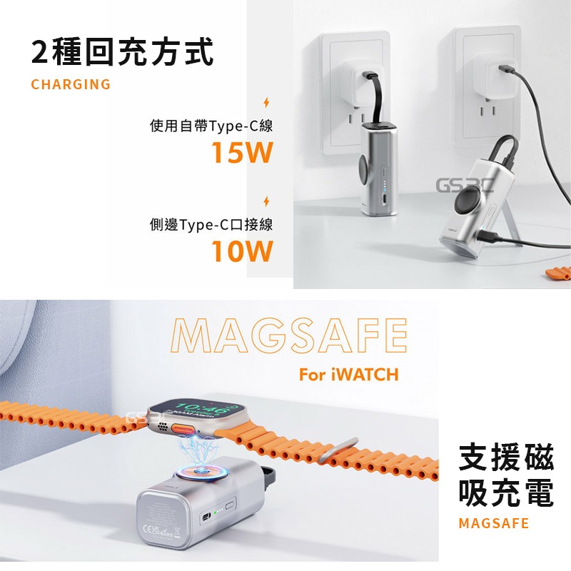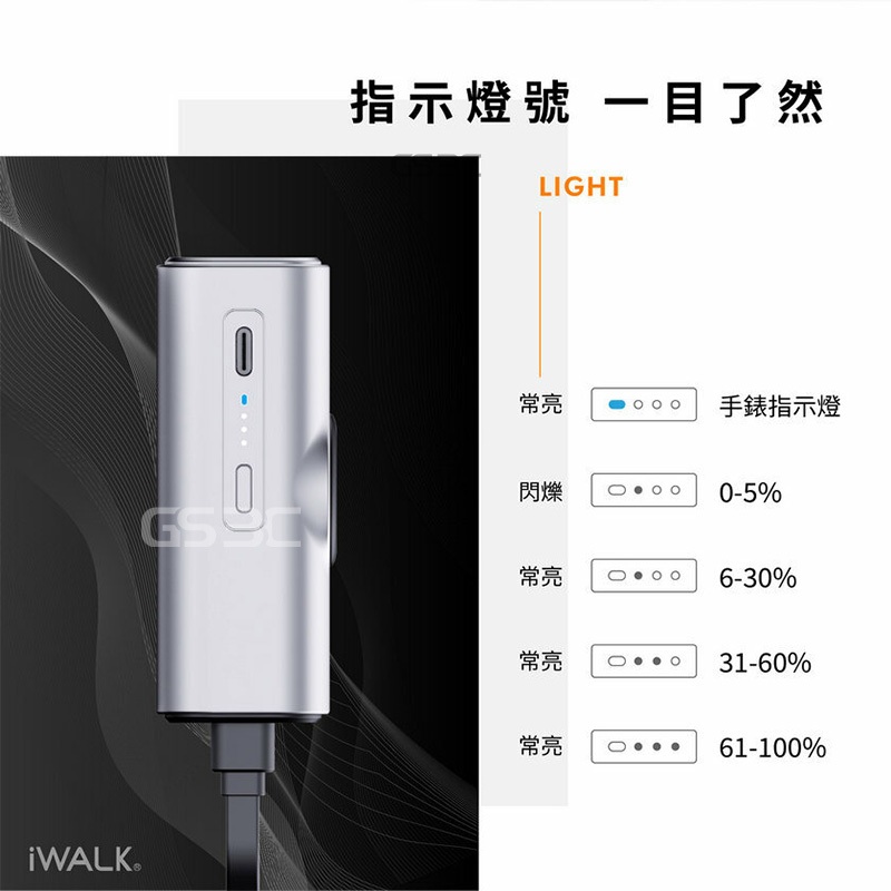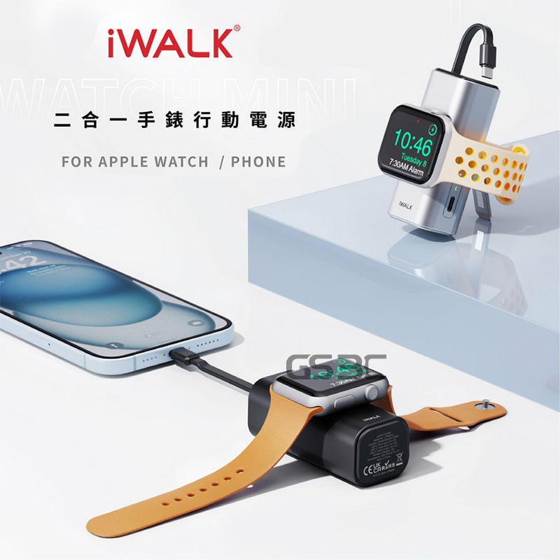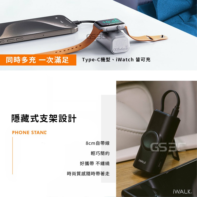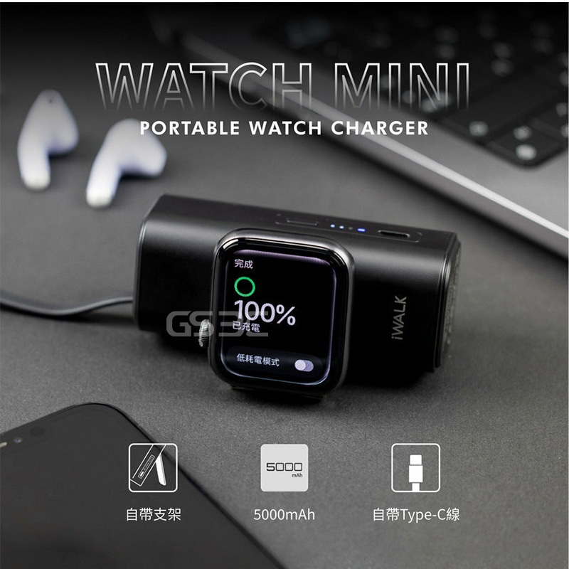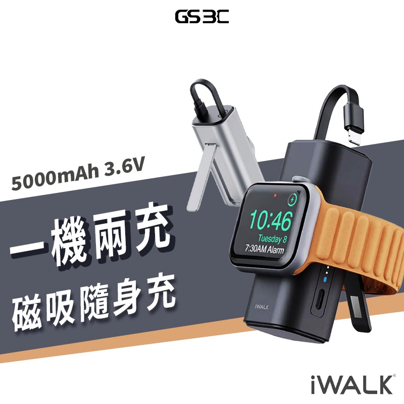 iWALK Apple Watch Mini 手錶隨身充 二合一 5000mAh 行動電源 usb-c 支架 有標示wh霧面黑|香檳銀Powerbanks & BatteriesGS 3C 手機平板配件選品店