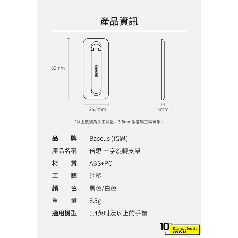 倍思 一字旋轉支架 360°多角度調節 90°翻轉折疊 一體設計 創意支架 桌面用 手機架 追劇 纖薄白色|黑色Selfie Accessoriesibits手機配件 官方旗艦館