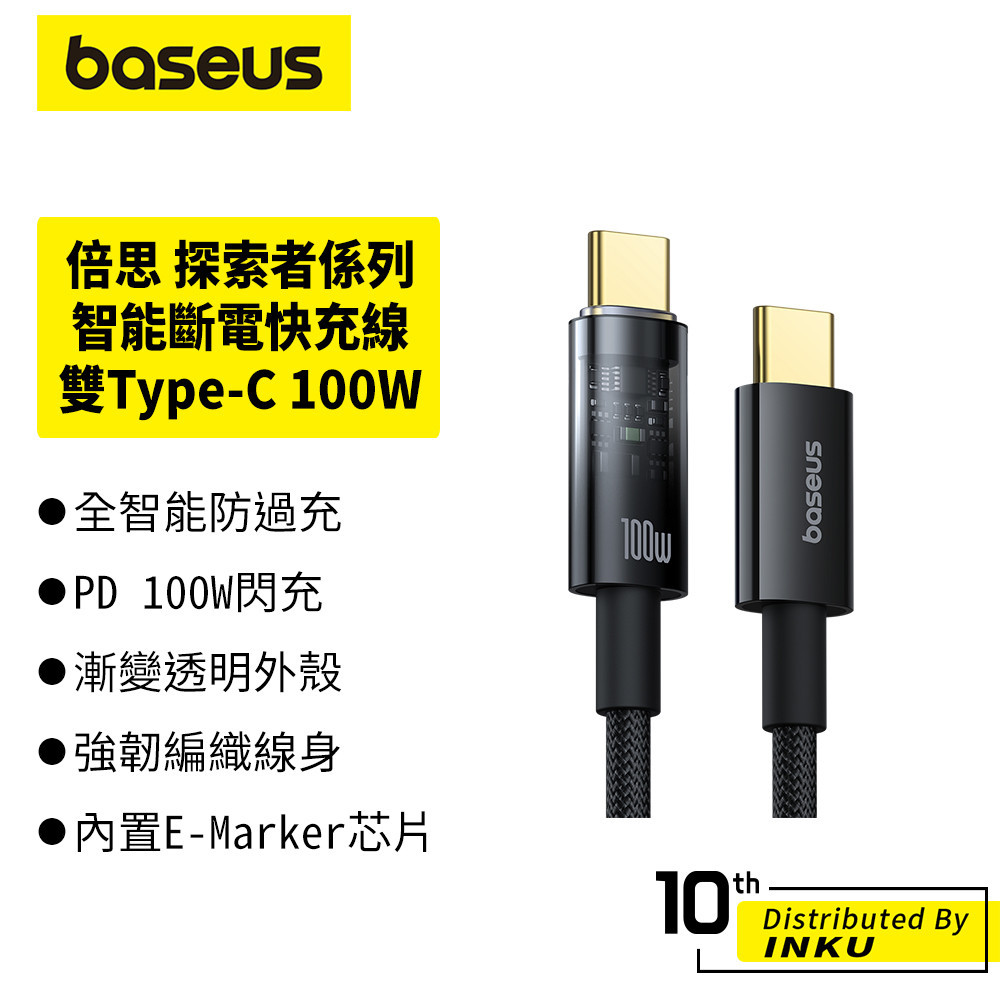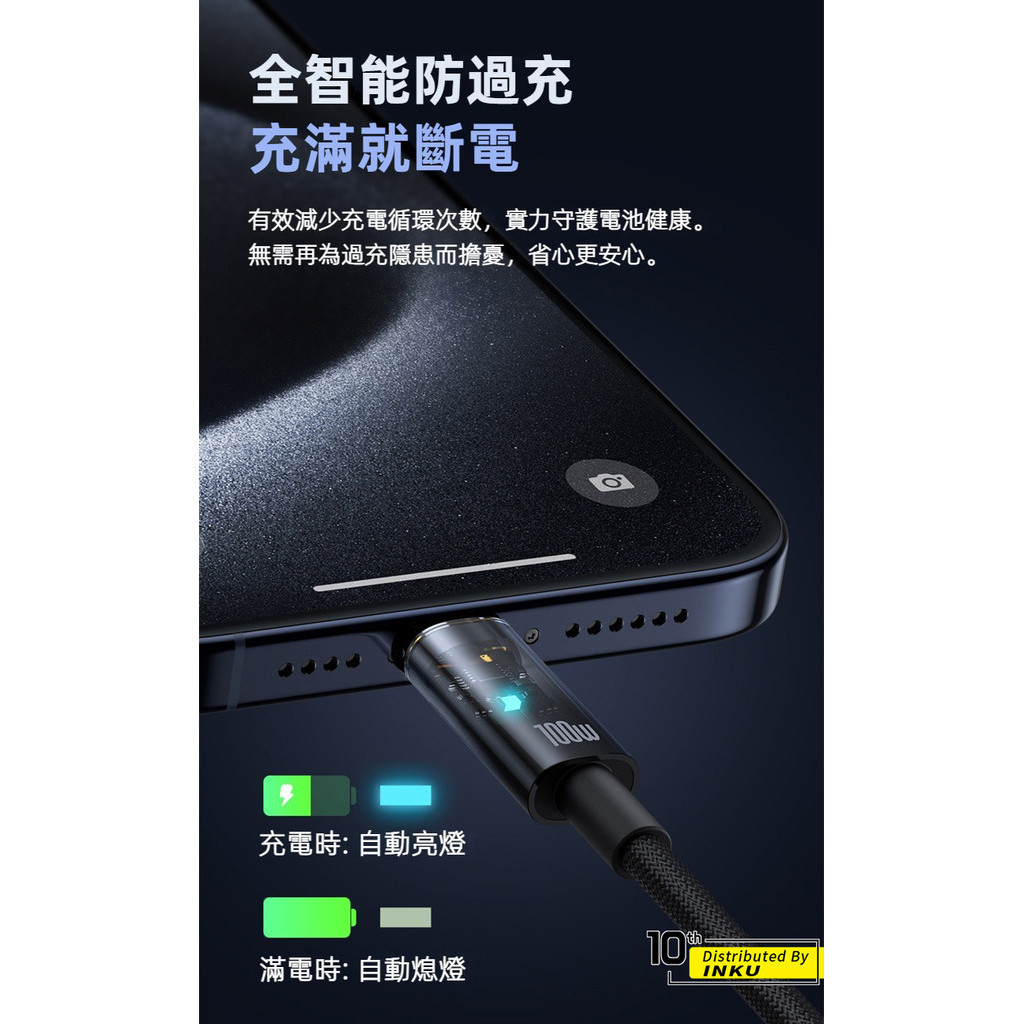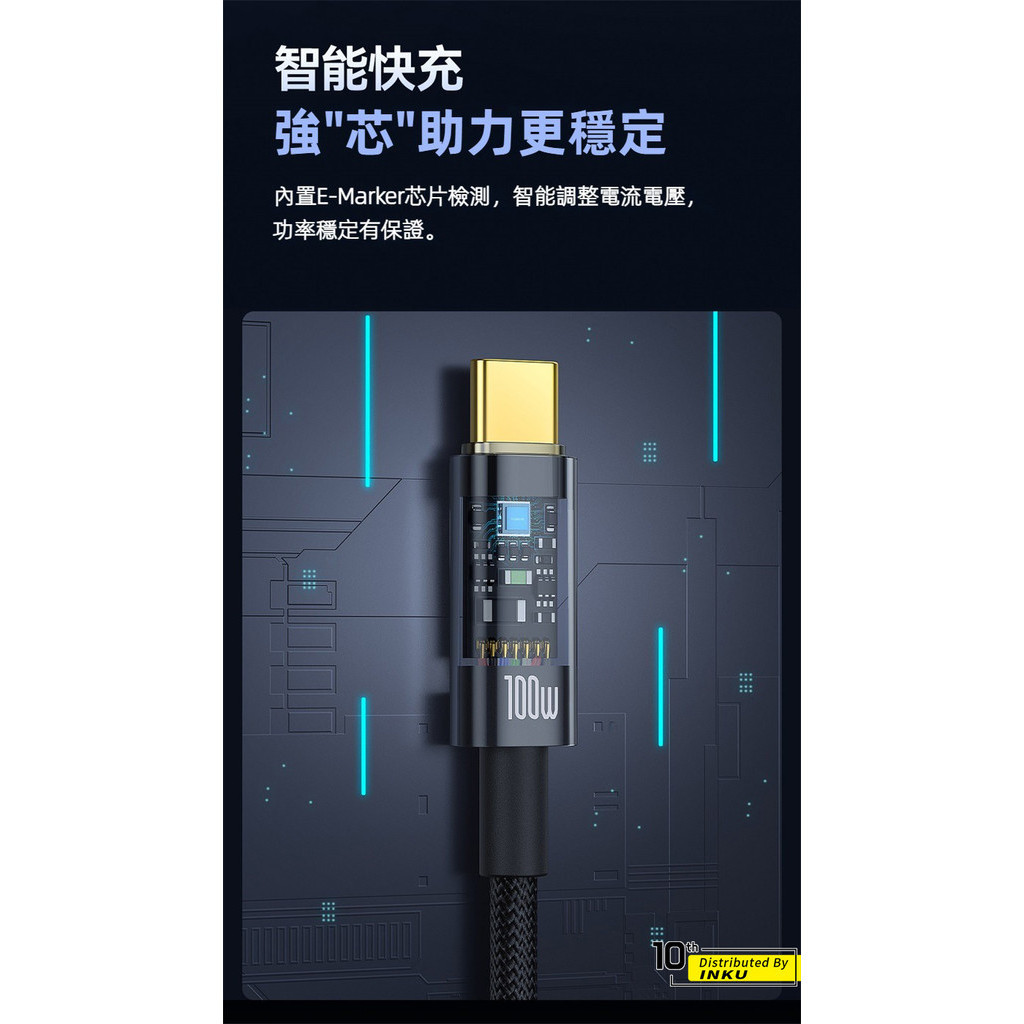 倍思 探索者智能斷電快充線 Type-C to Type-C 100W 導航通話 透明外殼 高效穩定 1m 2m星曜黑,1m|星曜黑,2m|深海藍,1m|深海藍,2mCables, Chargers & Convertersibits手機配件 官方旗艦館