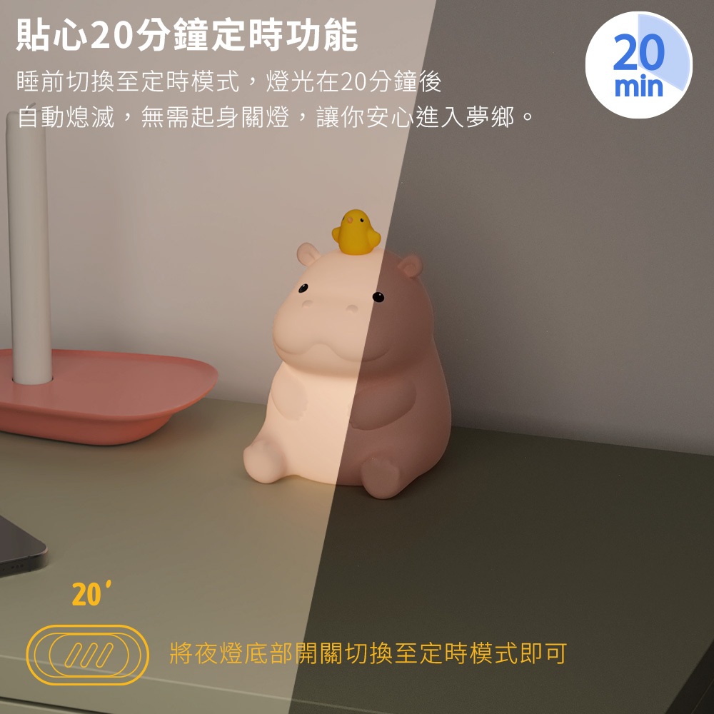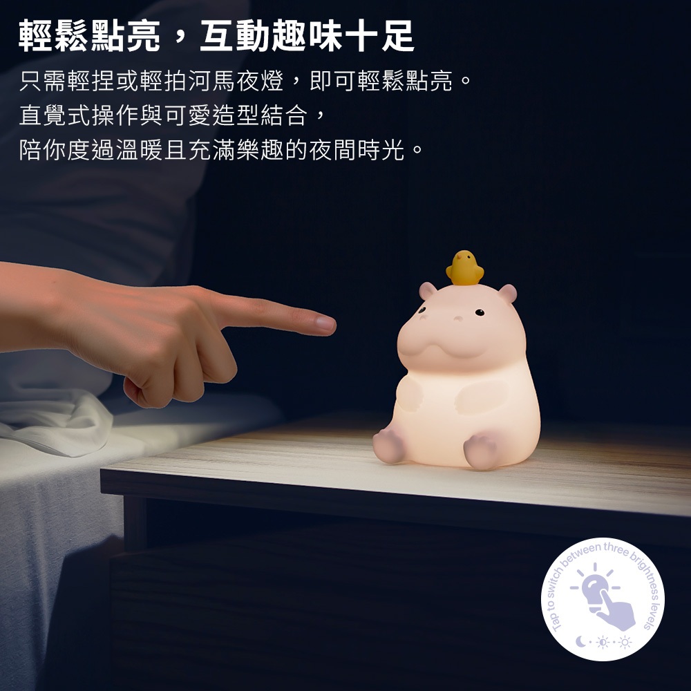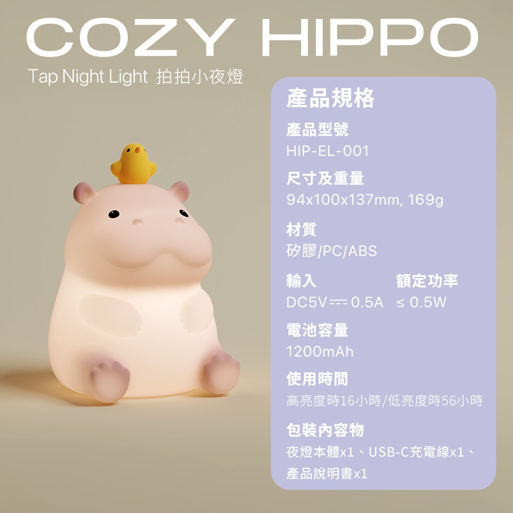 Hipporizz Cozy Hippo 拍拍小夜燈(TypeC充電) 情人節 交換禮物 河馬造型 溫馨柔光粉蜜膚USB & Mobile LightsHIPPORIZZ 官方旗艦店