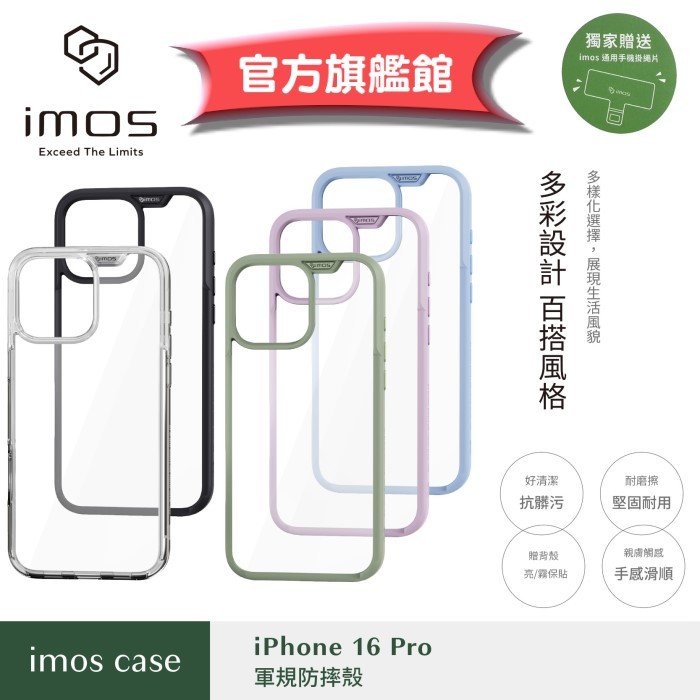 imos 【官方旗艦館】 iPhone 16 Pro 6.3 吋 軍規殼手機殼防摔殼 保護殼贈手機掛繩片跟手機殼背膜貼麻綠色 邊框亞麻綠色 背面透明|藍莓色 邊框藍莓色 背面透明|丁香紫色 邊框丁香紫色 背面透明|全透明|黑色 邊框黑色 背面透明Cases, Covers, & Skinsimos 官方旗艦館