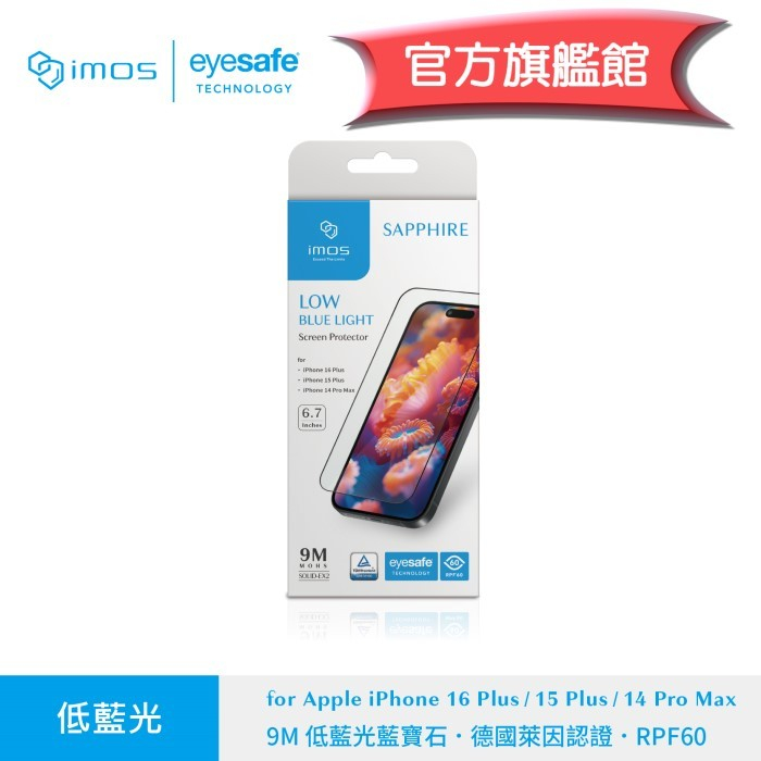 imos iPhone 14 Pro Max 15 Plus 16 Plus 德國萊因認證低藍光藍寶石玻璃保護貼imos iPhone 14 Pro Max 15 Plus 16 Plus 德國萊因認證低藍光藍寶石玻璃保護貼Screen Protectorsimos 官方旗艦館