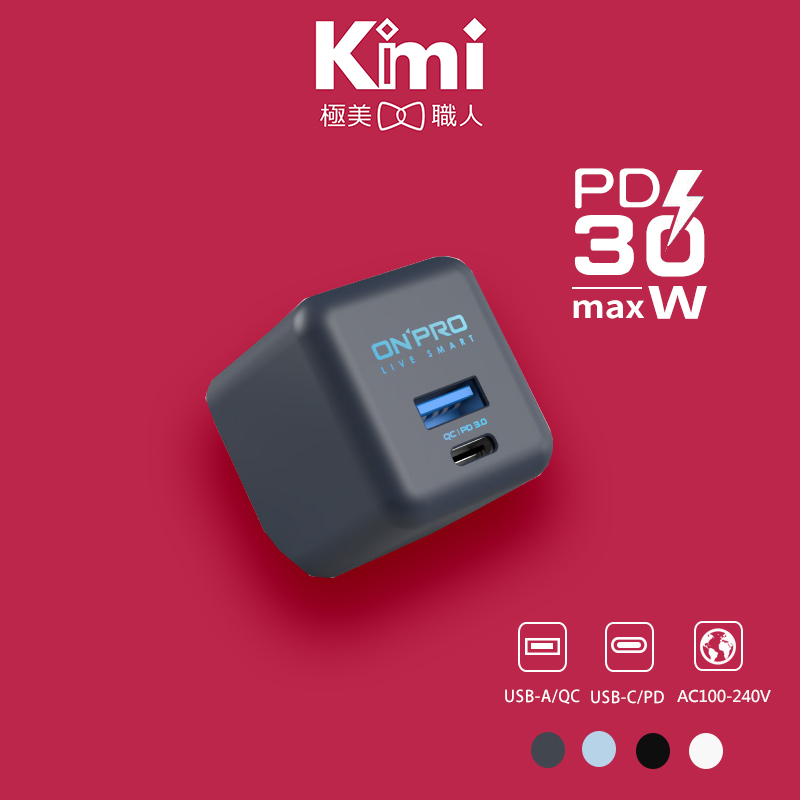 【ONPRO|30W雙孔快充頭】迷你超急速PD充電器 QC Type-C UC-2P01 PRO_Kimi極美職人推薦【太平洋藍】,單顆|【天峰藍】﹝停產﹞,單顆|【曜石黑】,單顆|【冰雪白】,單顆Cables, Chargers & ConvertersKimi極美職人