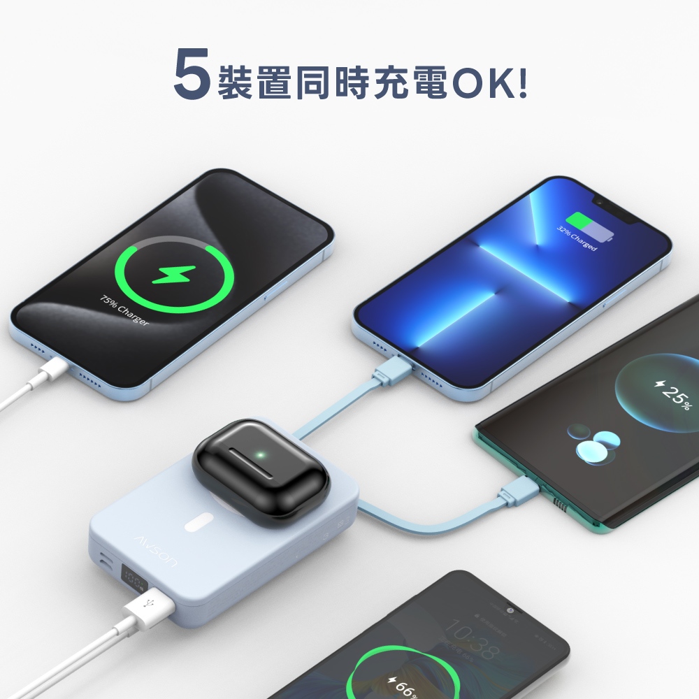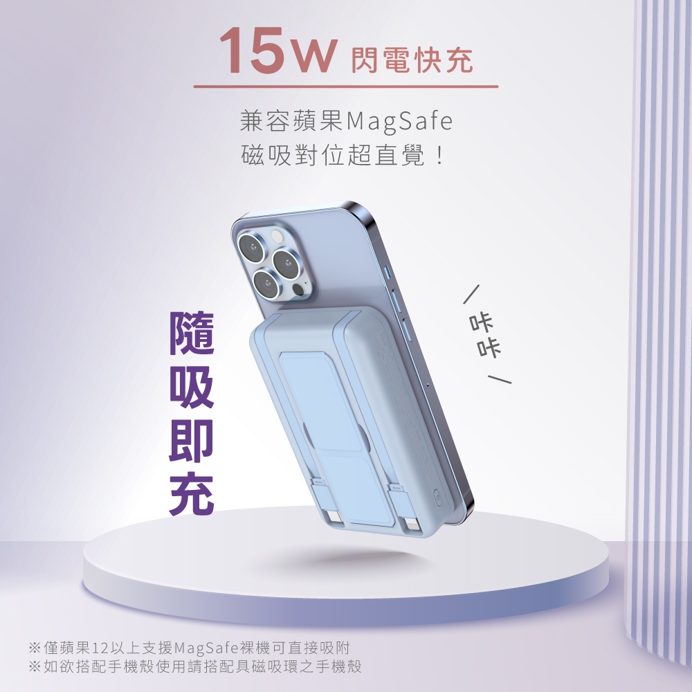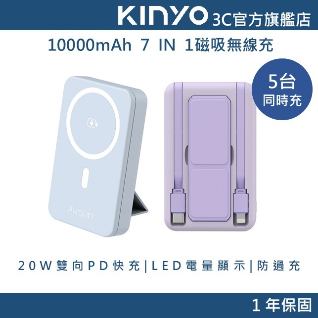 【KINYO官方直營】10000mAh 7 IN 1自帶雙線磁吸立架無線快充行動電源 (AWP) 蘋果 Type-CAWP5733BU 藍色|AWP5733PU 紫色Powerbanks & BatteriesKINYO官方旗艦店_3C館
