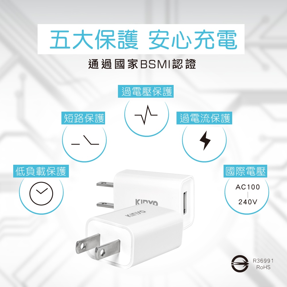 【KINYO官方直營】5W 豆腐頭單孔USB充電器 國際電壓(CUH)CUH19W 單孔USB充電器Cables, Chargers & ConvertersKINYO官方旗艦店_3C館