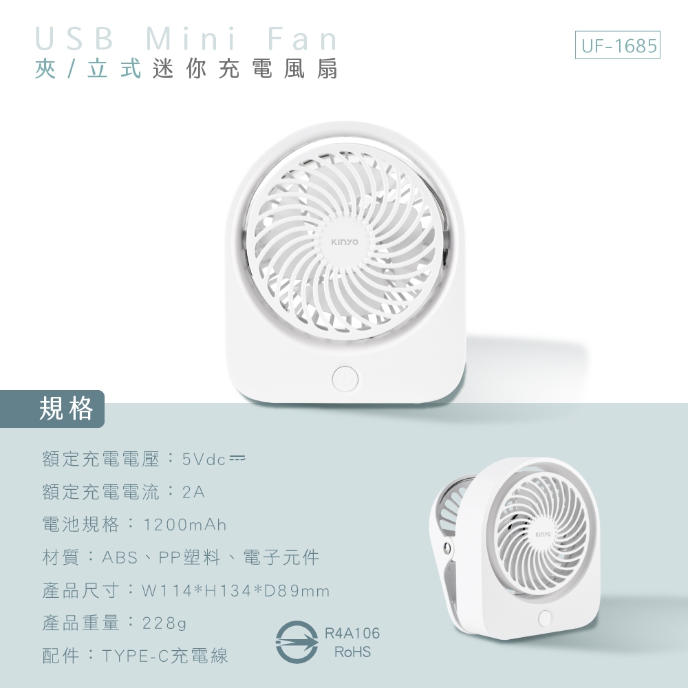 【KINYO官方直營】桌夾兩用 大夾口迷你USB充電風扇/手持風扇(UF)UF1685-A 福利品|UF1685 正常品USB & Mobile FansKINYO官方旗艦店_3C館