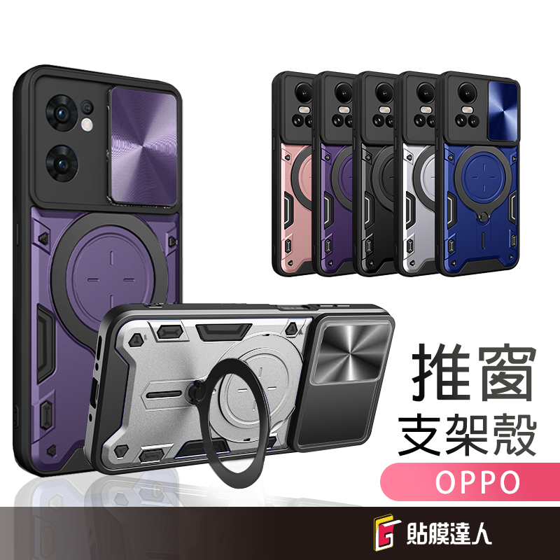 OPPO 指環推窗保護殼 360度旋轉磁吸防摔殼 適用 Reno 14 13F 13 Pro 12 11F A5 A3x