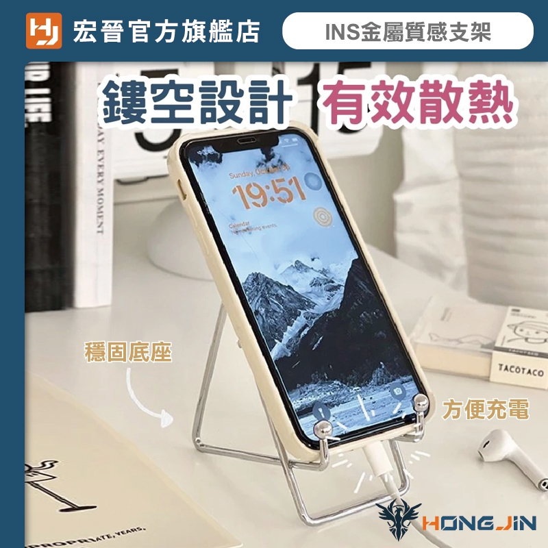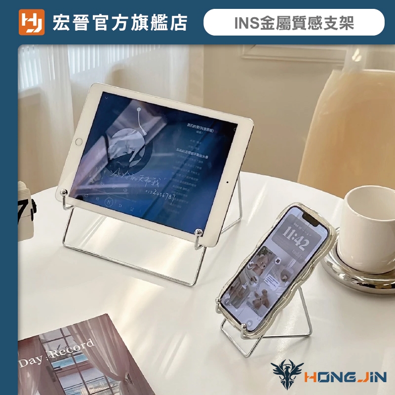 INS金屬質感支架 手機架 平板架 書架 展示架 簡約手機款-小(5×9.5×8.8cm)|平板款-大(20x17x15.5cm)Phone GripsHONG JIN 宏晉 |3C資訊廣場