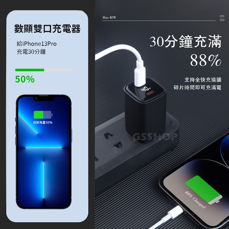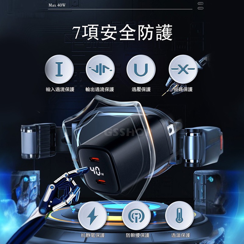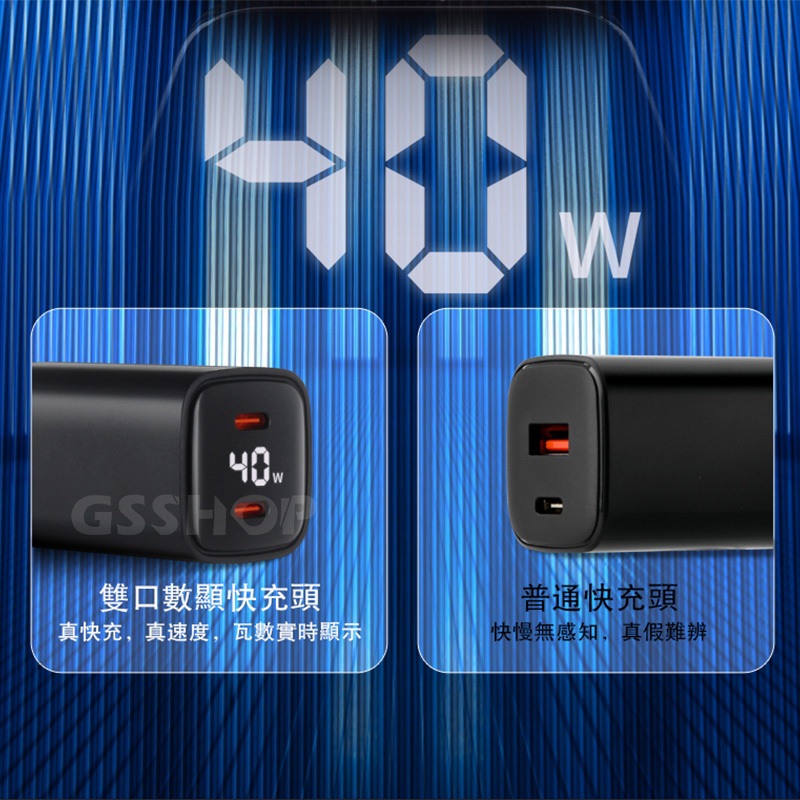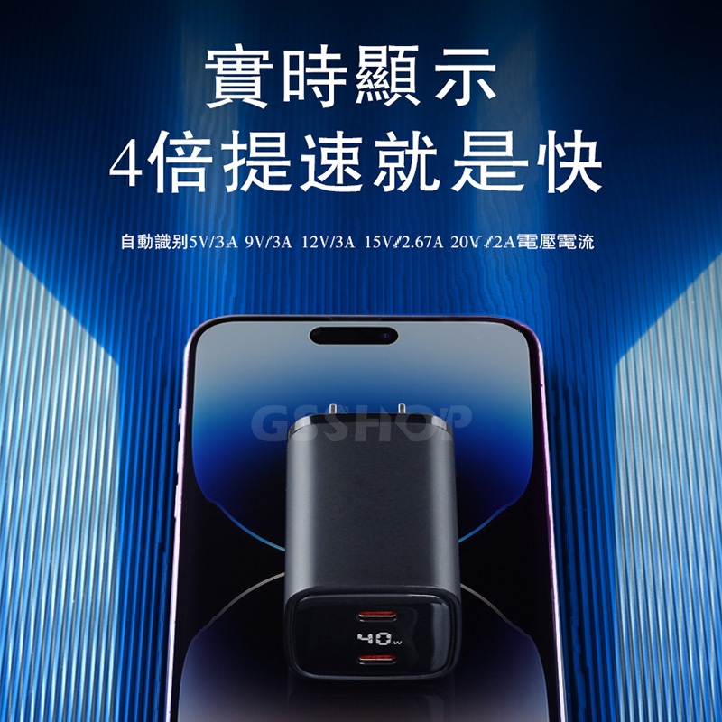 • 40W 雙孔 PD 快充頭 iPhone 16 Pro Max 雙孔 usb-c 數位顯示 GaN 氮化鎵 體積小 閃充