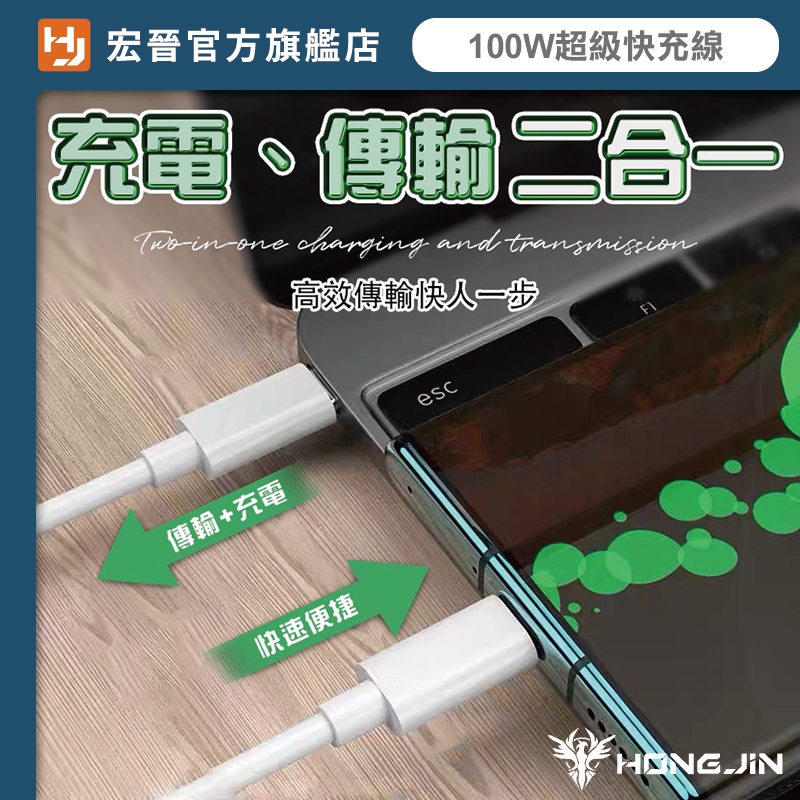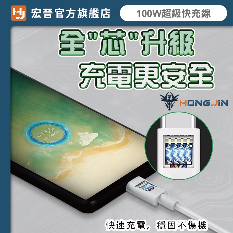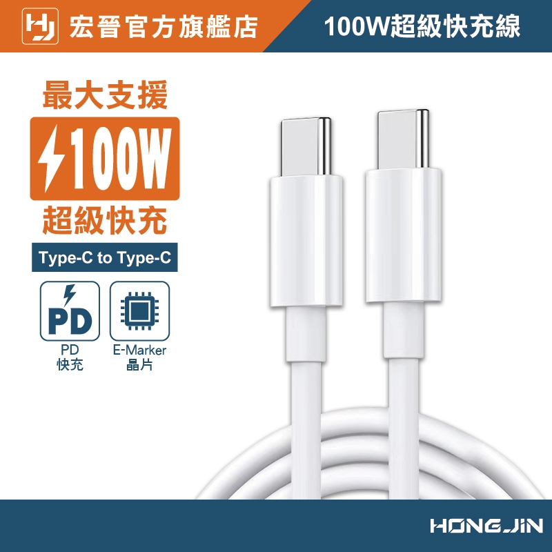 宏晉 100W超級快充線 E-Marker芯片 六芯快充線 Type-C to Type-C PD充電線 適用筆電 平板E-MARKER芯片【C-C】2米|E-MARKER芯片【一托二】1.2米|E-MARKER芯片【C-C】1米Cables, Chargers & ConvertersHONG JIN 宏晉 |3C資訊廣場