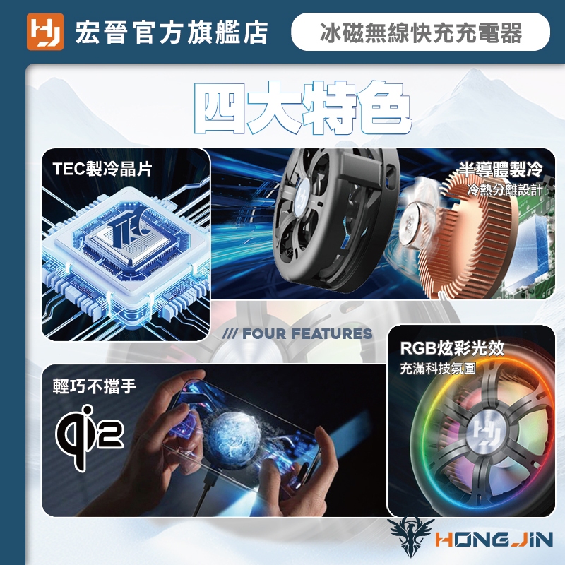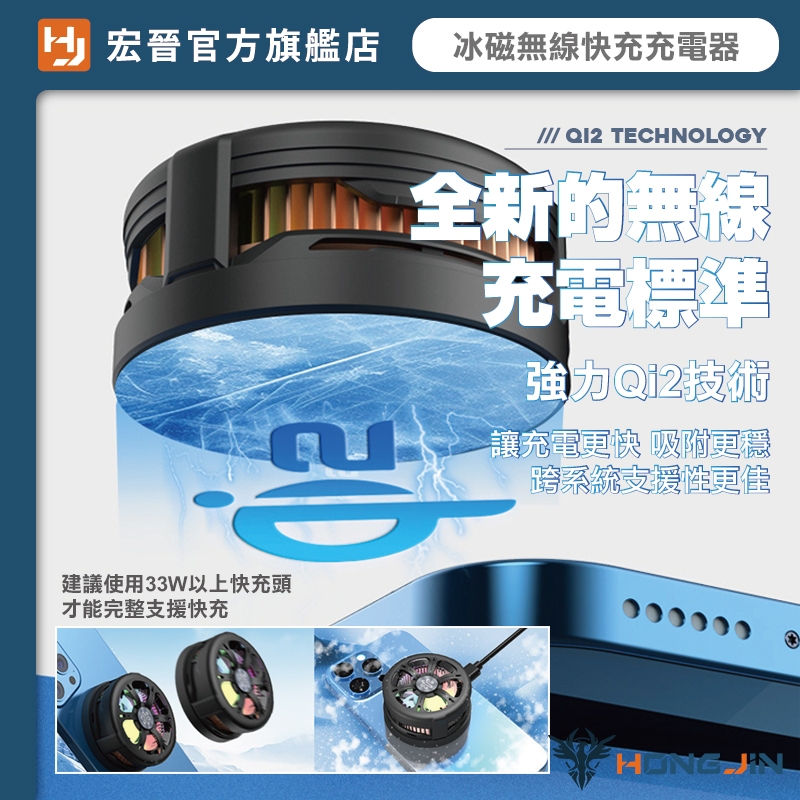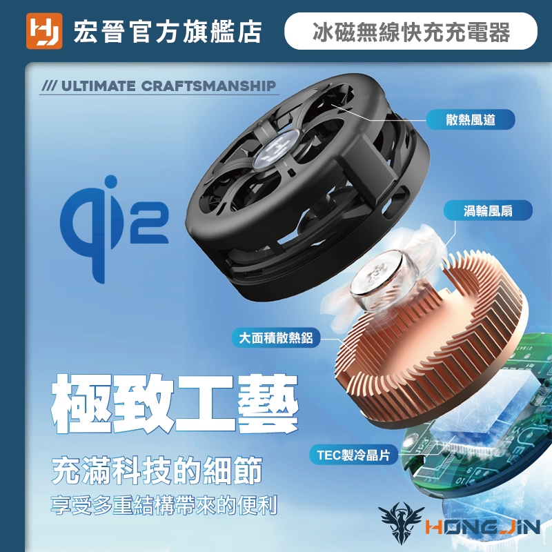 宏晉 Q12 冰磁無線充電器 支援Qi2 15W快充 N52磁吸 製冷散熱 MagSafe適用Q12 磁吸無線充散熱器|📌Cables, Chargers & ConvertersHONG JIN 宏晉 |3C資訊廣場
