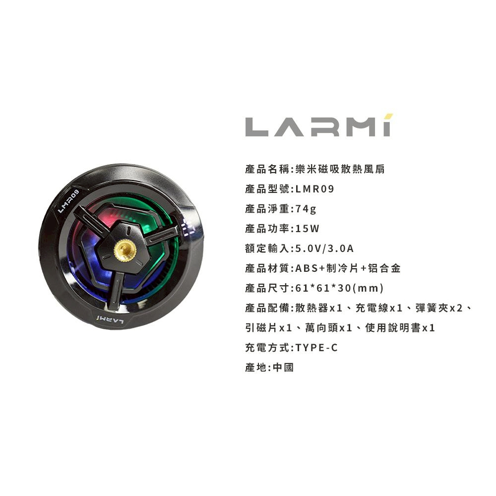 樂米LARMI 手機磁吸散熱風扇 LMR09 吃雞神器 製冷 手機風扇 手機降溫散熱器 手機冷卻-台灣現貨免運