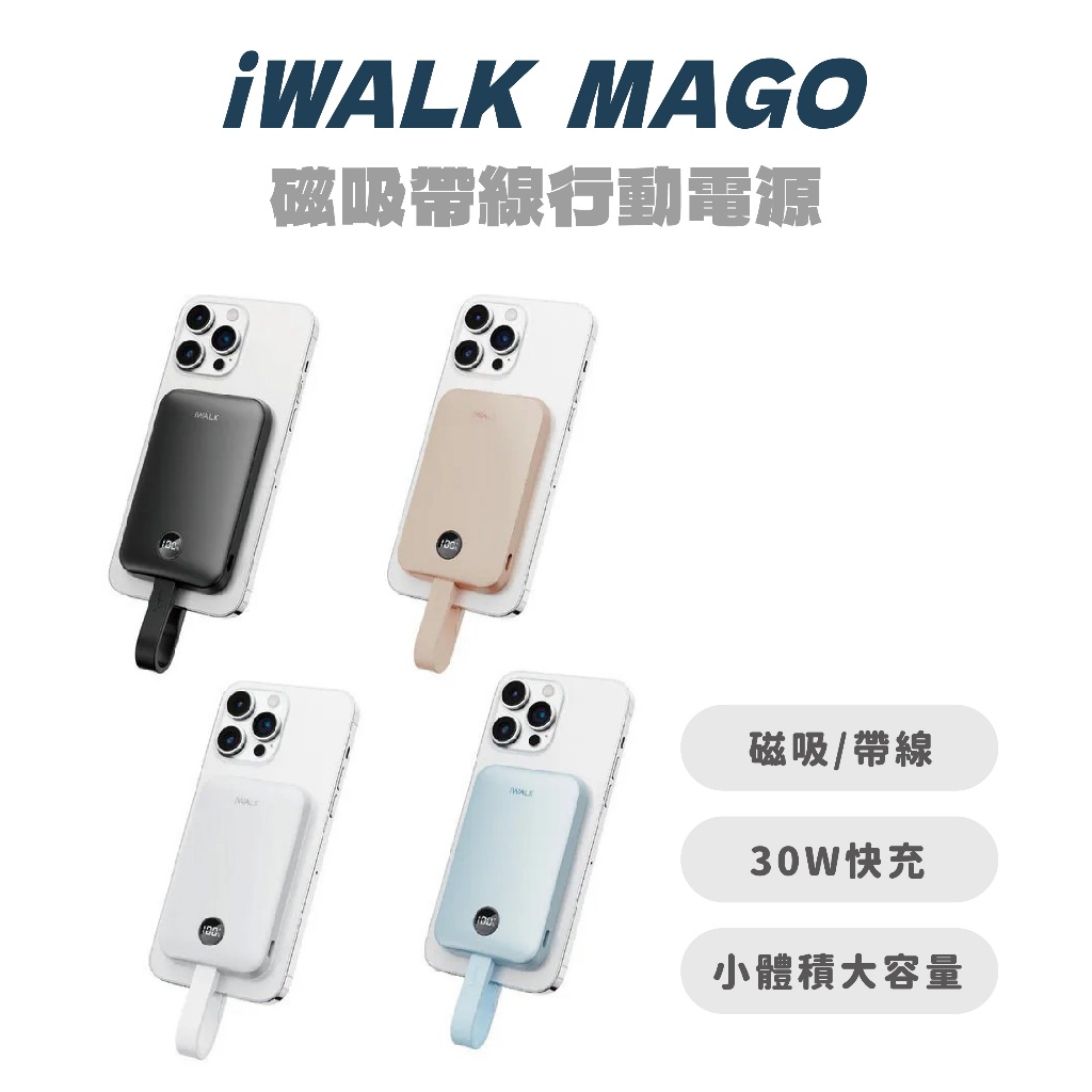 【iWALK】 MAGO 磁吸帶線行動電源 磁吸行動電源 薄型行動電源 磁吸行充 iwalk行充 行動電源黑色|奶茶色|白色|藍色Powerbanks & BatteriesJC科技 官方旗艦店