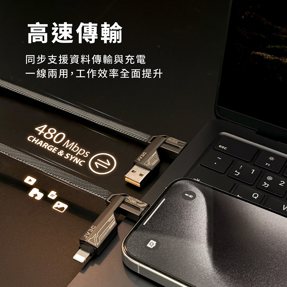 JV3C 100W 四合一機甲充電傳輸線 傳輸線 充電線 快充線 快充 支援快充 PD快充 4合1 iPhone 安卓